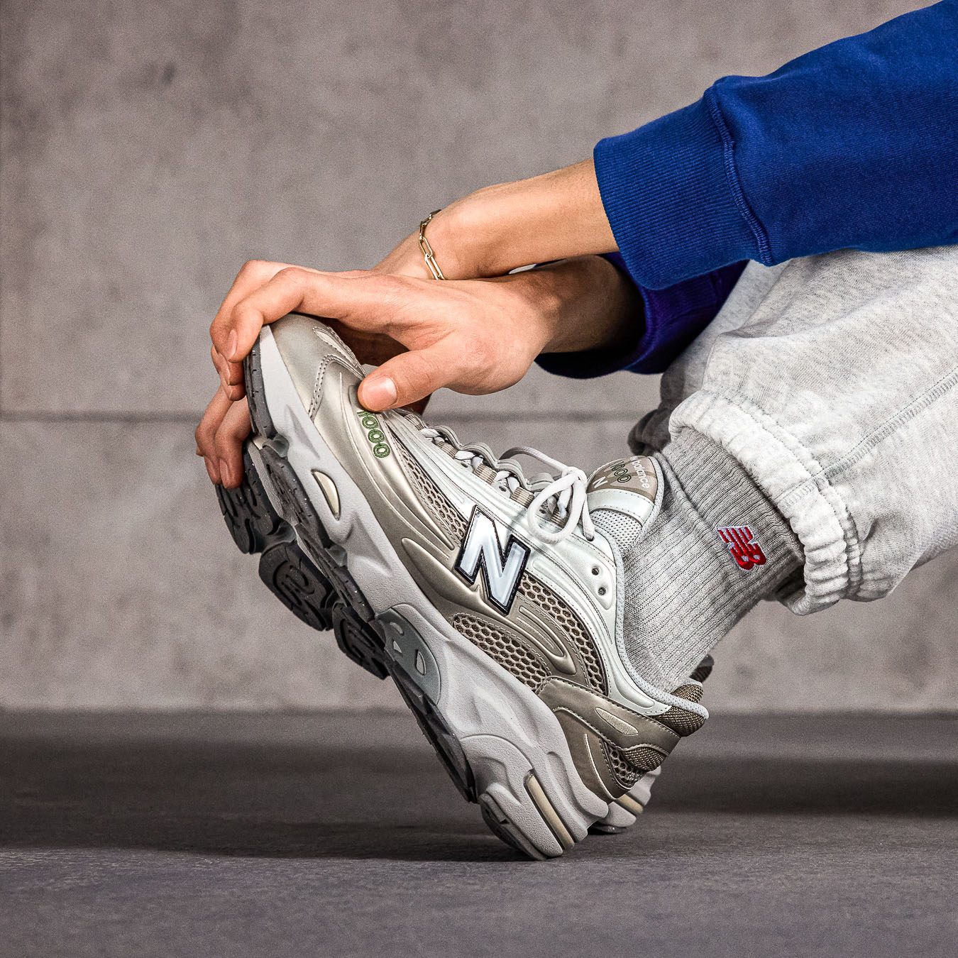 Ausgestattet mit leichtem Mesh und synthetischen Leder-Overlays, ist diese Version des 1000 ein klares Musthave für die aktuelle Saison.