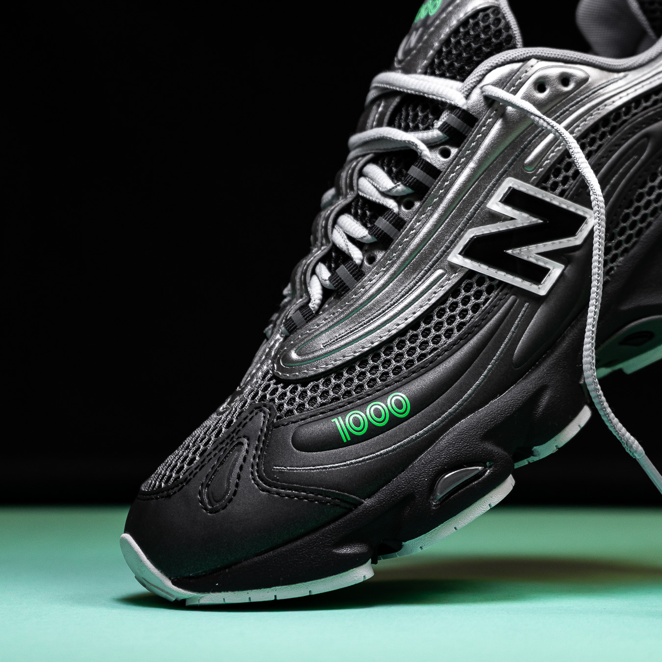 Ausgestattet mit leichtem Mesh und synthetischen Leder-Overlays, ist diese Version des 1000 ein klares Musthave für die aktuelle Saison.