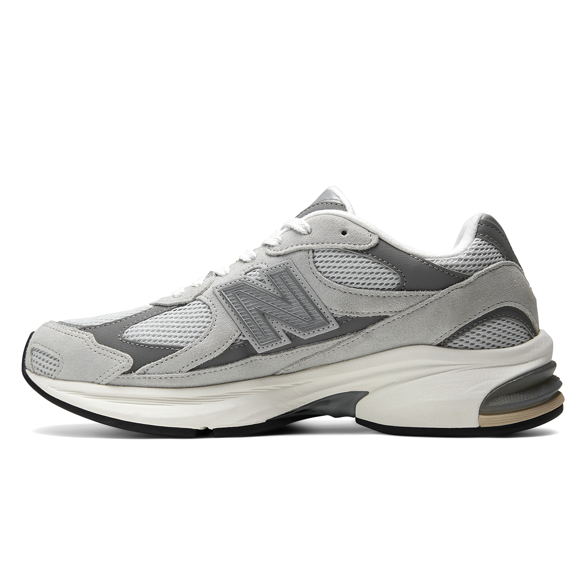 Das Upper kombiniert atmungsaktives Mesh mit präzise gesetzten Wildleder-Overlays, die nicht nur visuell Tiefe schaffen, sondern auch für Struktur und Langlebigkeit sorgen. Die soften Grautöne liefern einen cleanen, vielseitigen Look, der sich mühelos in jede Rotation integrieren lässt – egal ob Streetwear oder smarter Casual Fit.