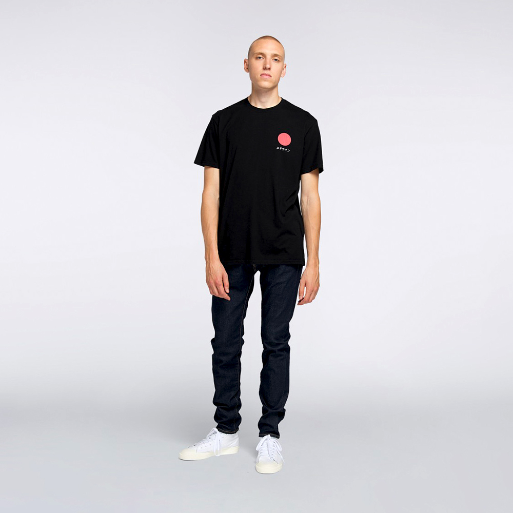 EDWIN wurde 1947 in Tokio gegründet. Dieses T-Shirt mit dem roten Punkt über dem Japanischen Logo ist eine großartige Anspielung auf das Land der aufgehenden Sonne. Klassisch geschnittenes Baumwoll-Shirt aus 165gr Single-Jersey.