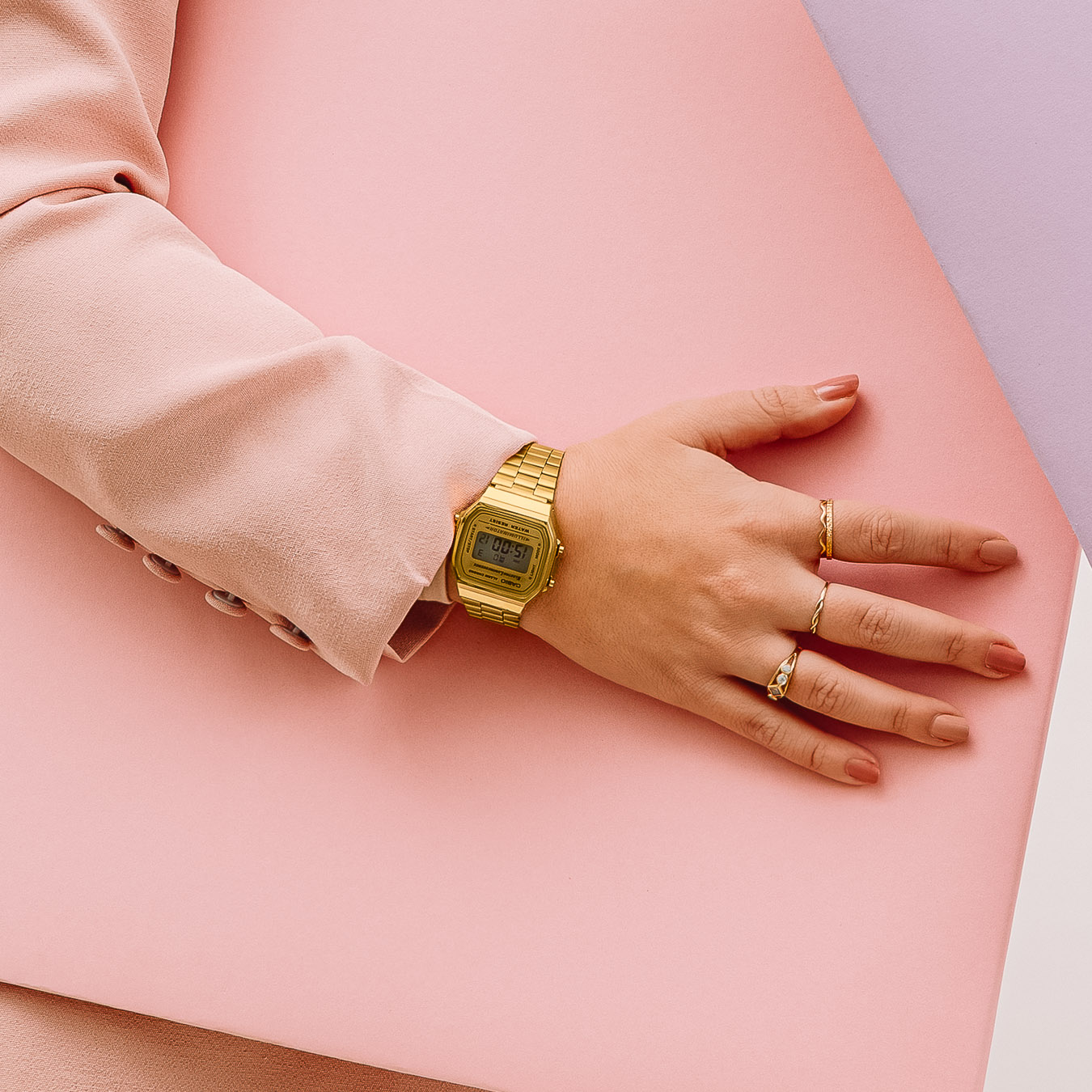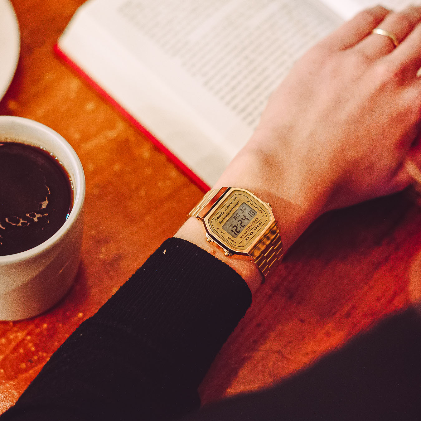 Ikonisches Retro Design auf einem digitalen CASIO Klassiker. Ein eleganter Look und pure Vintage-Raffinesse.