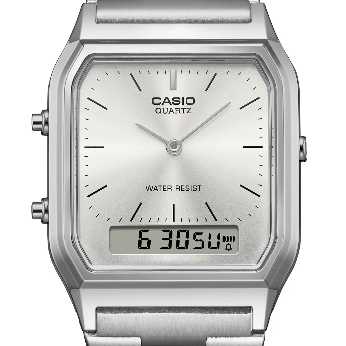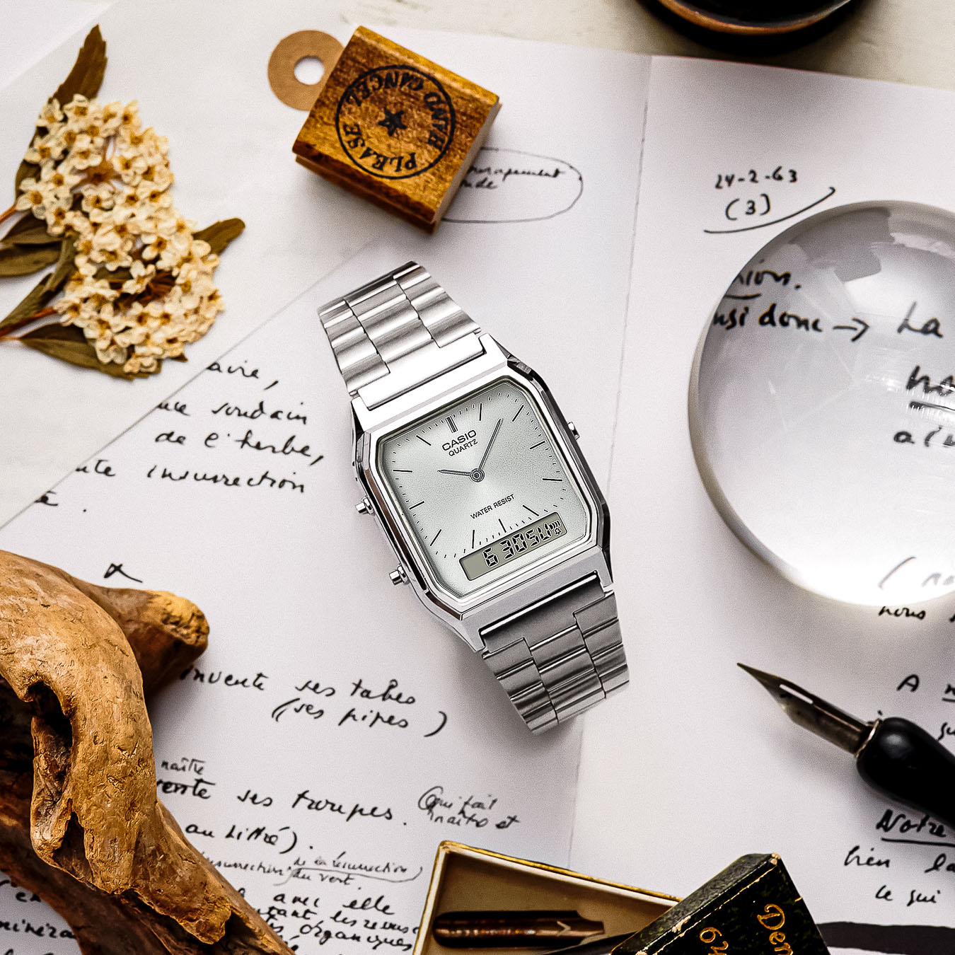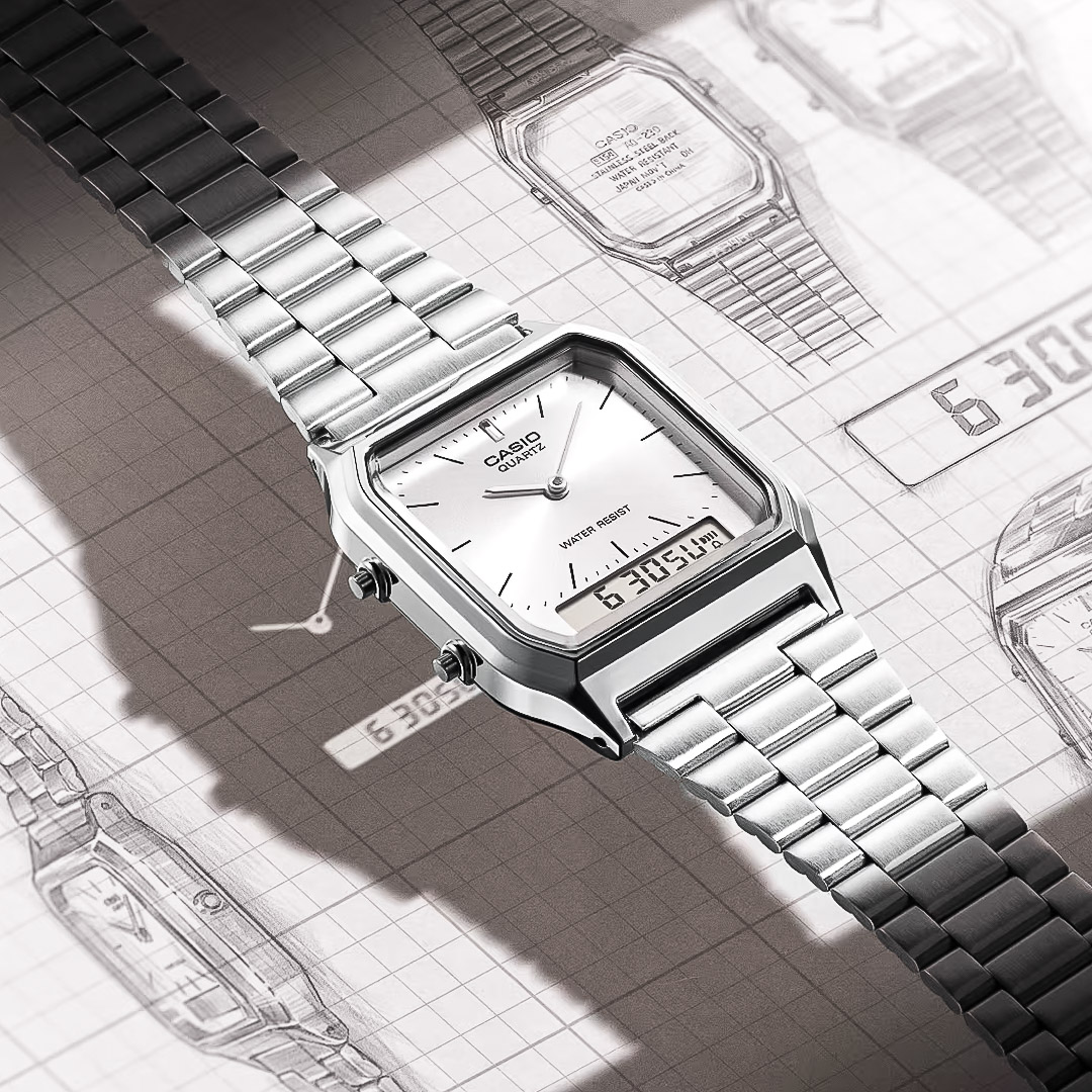 Ein legendäres CASIO Design mit dualer Zeitanzeige. Retro-Einfachheit trifft auf moderne Funktionalität in einer analogen Uhr mit kleinem digitalen Fenster für nützliche Infos auf Knopfdruck. Ein vielseitiges, elegantes Design für jeden Anlass.