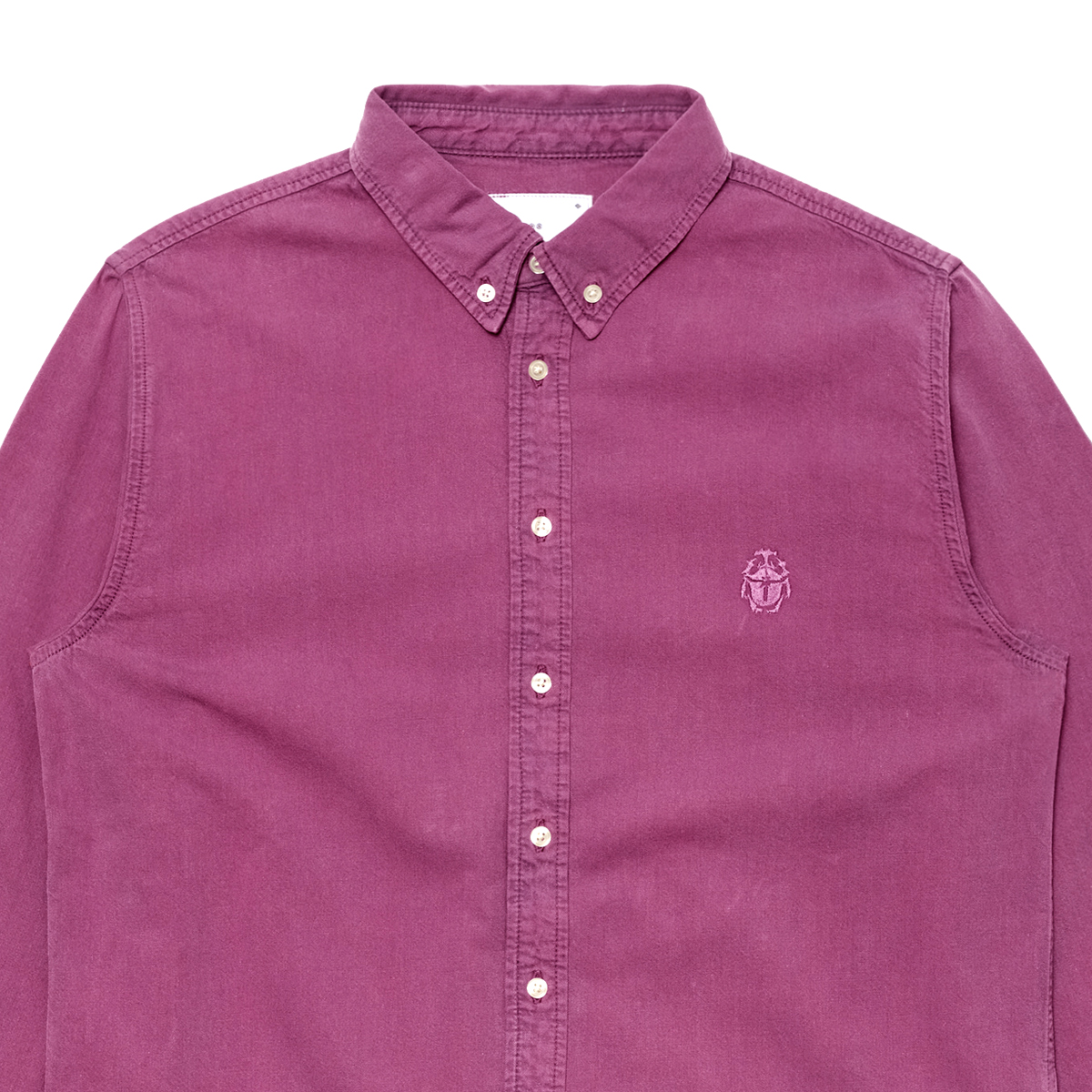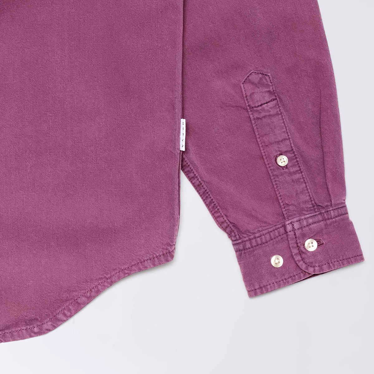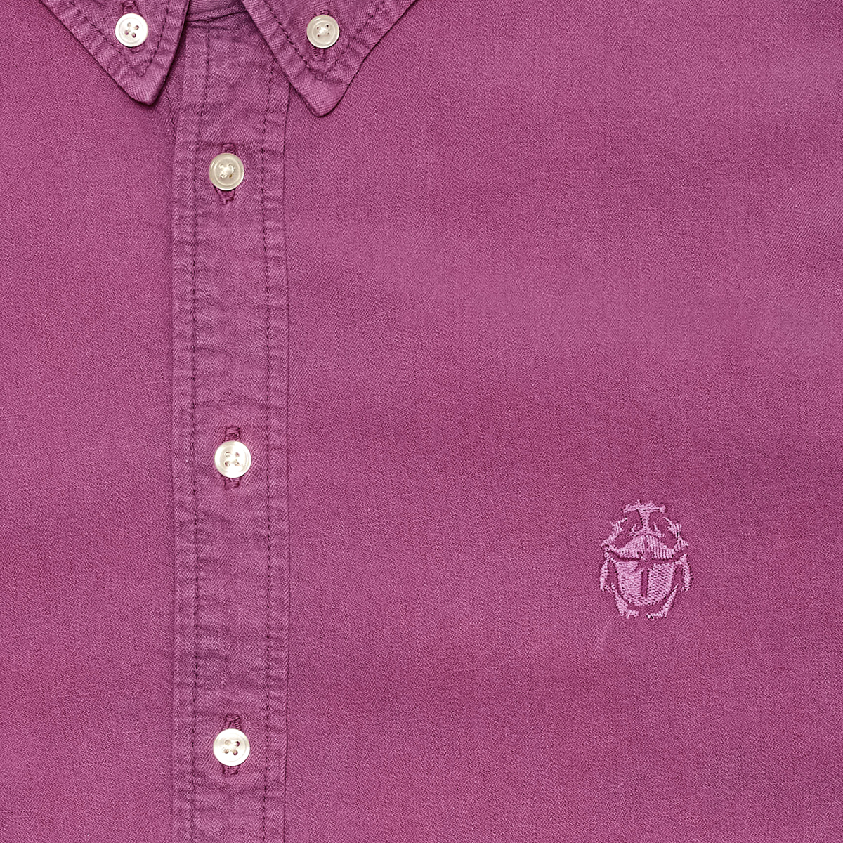 Das EDWIN Arlo Shirt ist eine stylishe Interpretation des klassischen Button-Down-Hemdes. Es ist aus 7,6 oz schwerem italienischem Edan Blue Denim gefertigt und mit einer markanten Red-Plum-Dyed Waschung veredelt. Dieses Verfahren verleiht dem Stoff eine komplexe, satte Farbe und einen weichen Griff. Das Hemd hat eine klassische, reguläre Passform, einen Button-Down-Kragen und ist dezent mit einem tonal gestickten Beetle Artwork verziert.