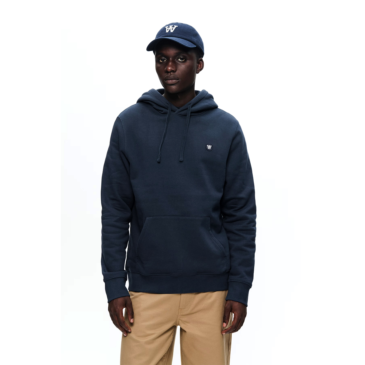 Das WOOD WOOD Ash Hoodie kommt in einem Unisex Standard-Fit aus 320g/m schwerem, brushedback Better Cotton (100% Baumwolle ).