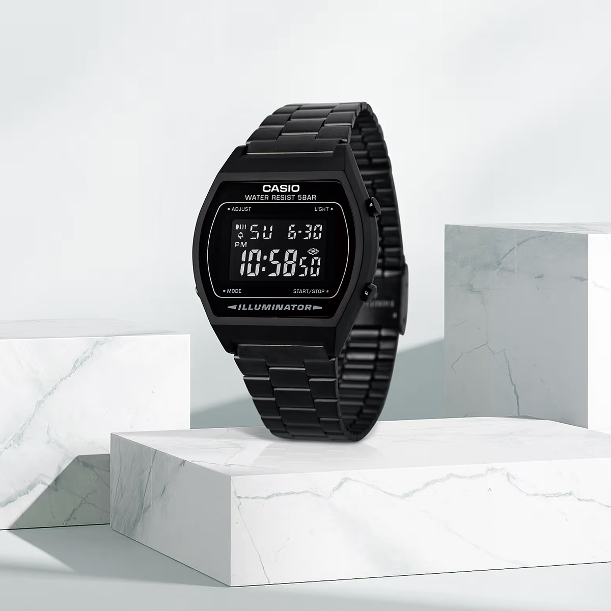 Monochromes All-Black Design auf einem digitalen CASIO Klassiker. Ein eleganter Look und pure Vintage-Raffinesse.