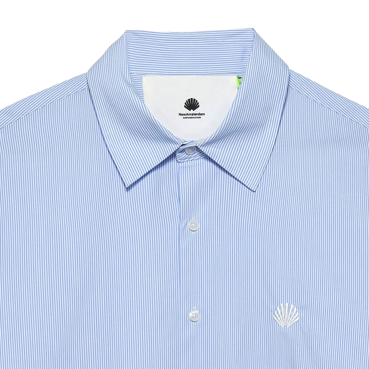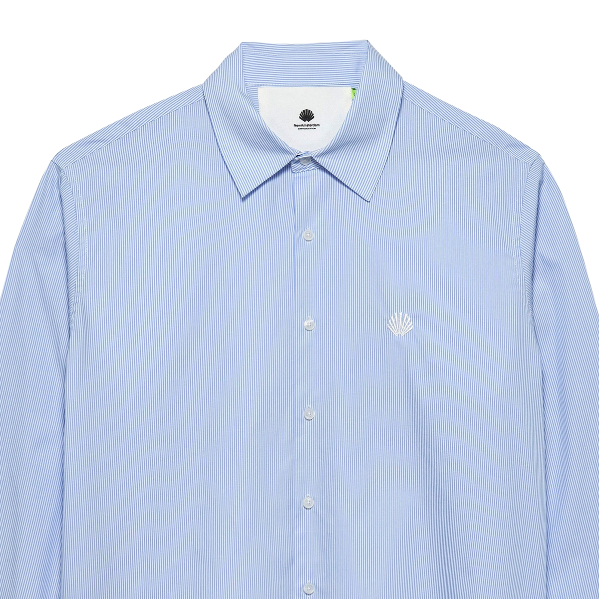 New Amsterdam Beach Shirt in Pinstripe Optik, gefertigt aus leichtem Baumwoll-Poplin in einem Regular Fit und kleinem, gestickten Oyster Logo auf der Brust.