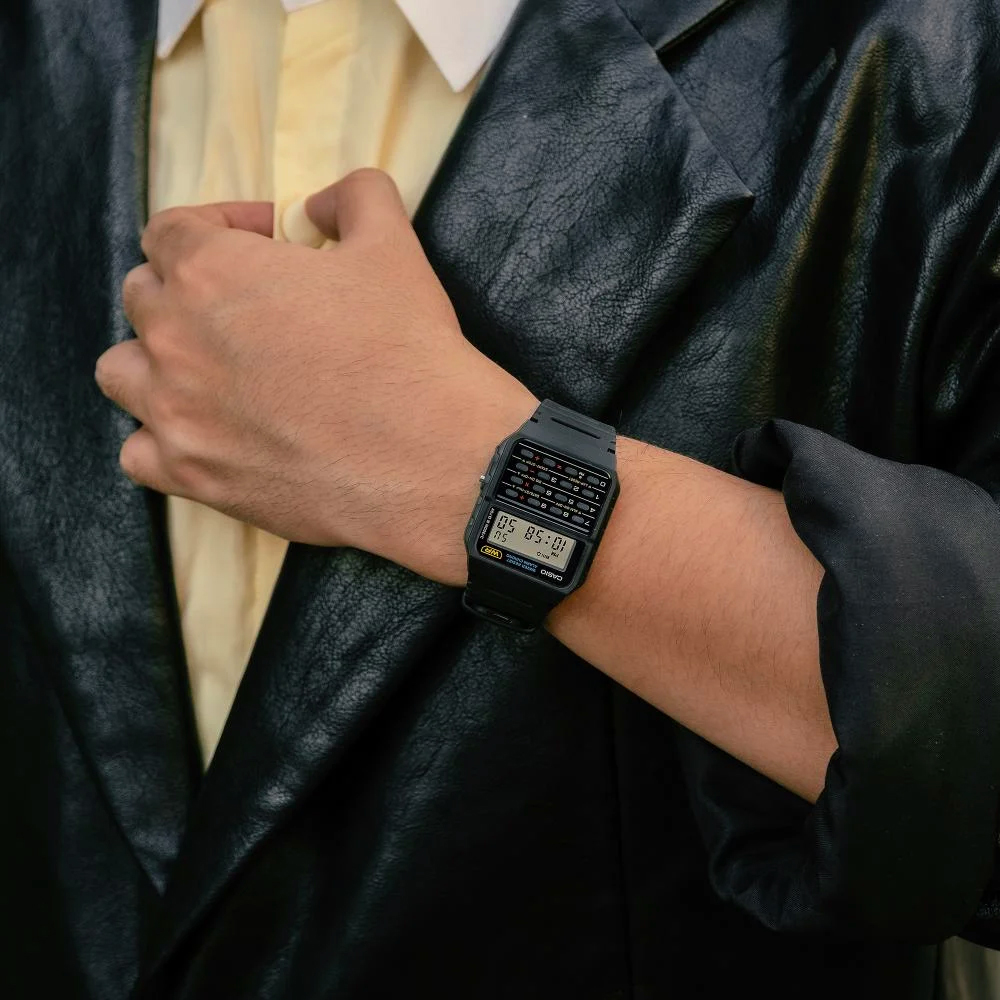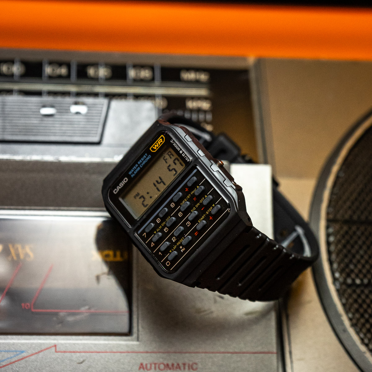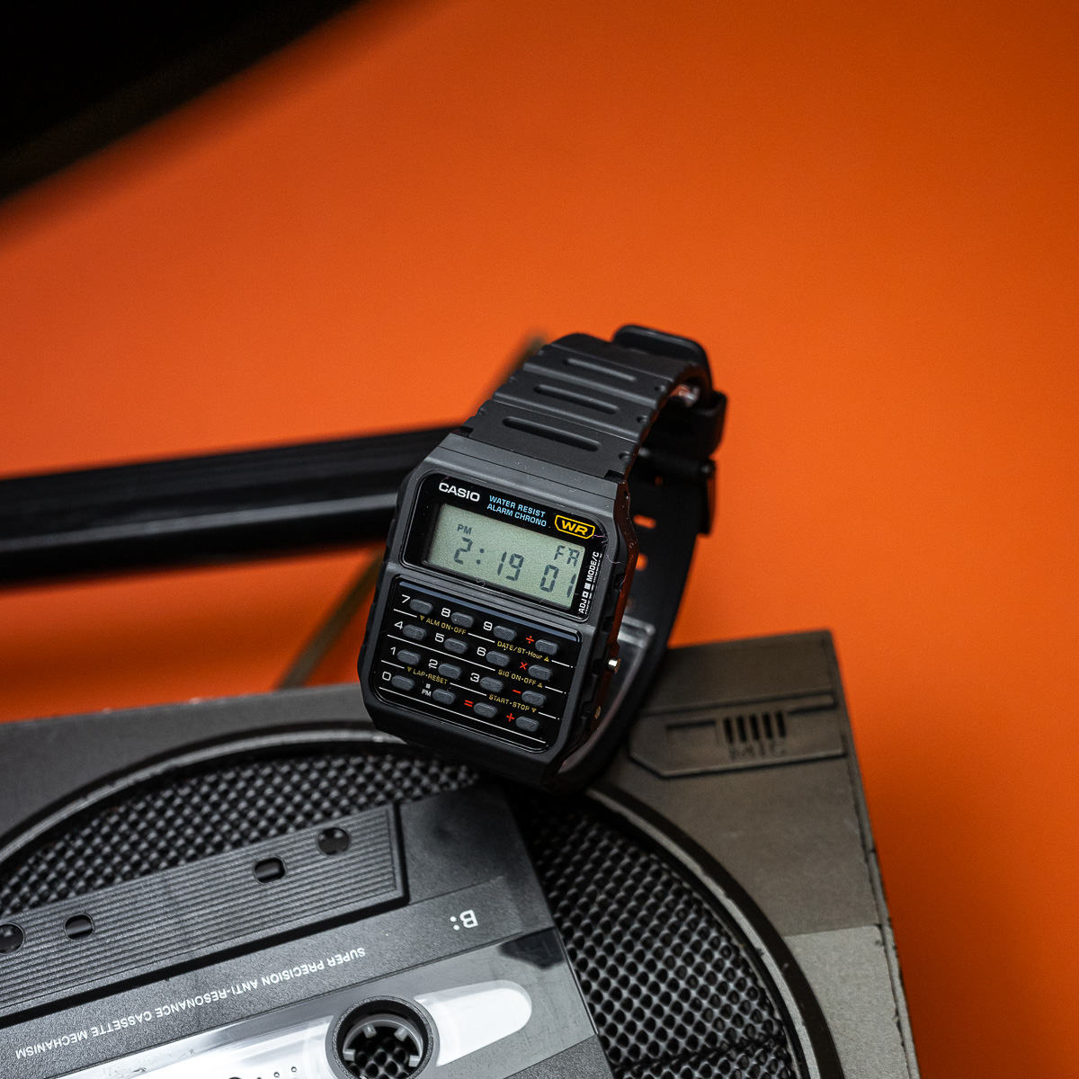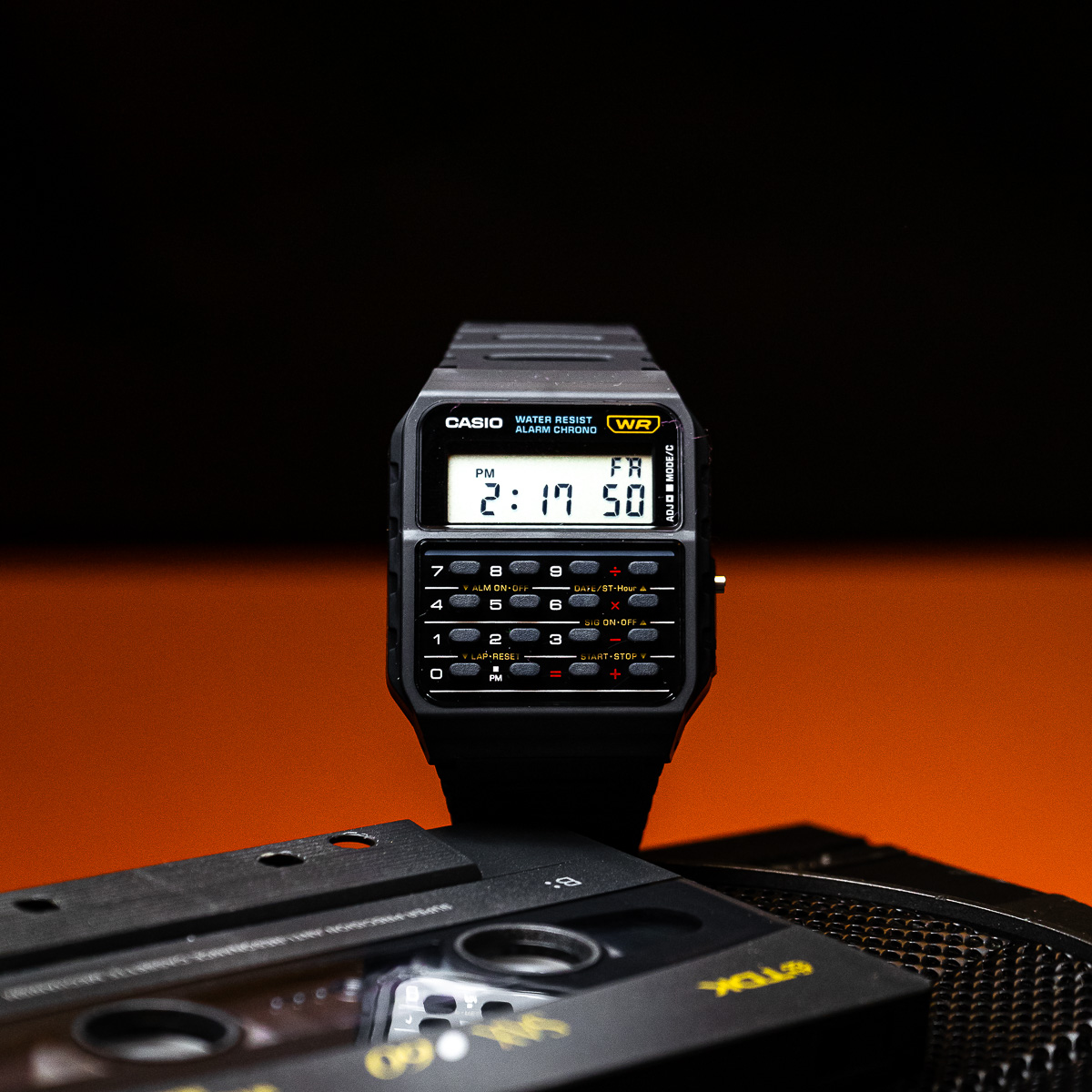 Die CA-53, der Dauerbrenner unter den Taschenrechner-Uhren von Casio, erinnert an den Casio Mini, den ersten Taschenrechner der Welt. Vermutlich die markanteste Uhr der 80er Jahre.