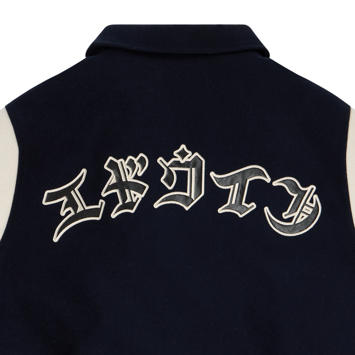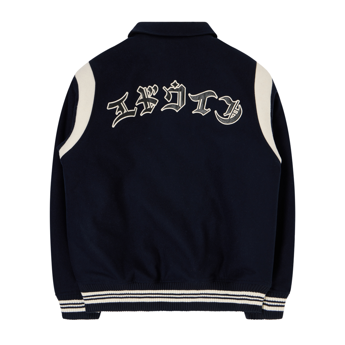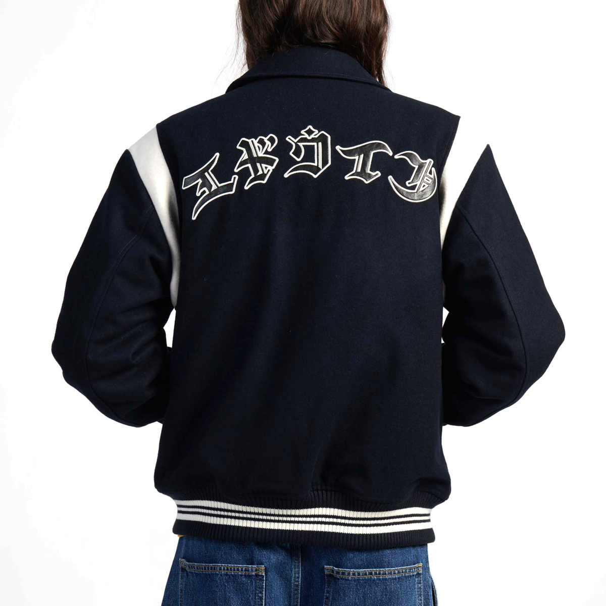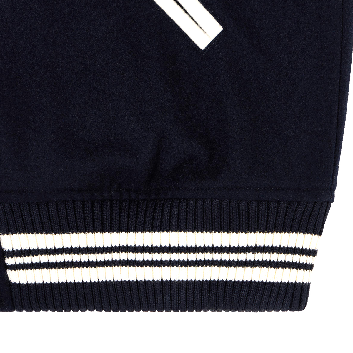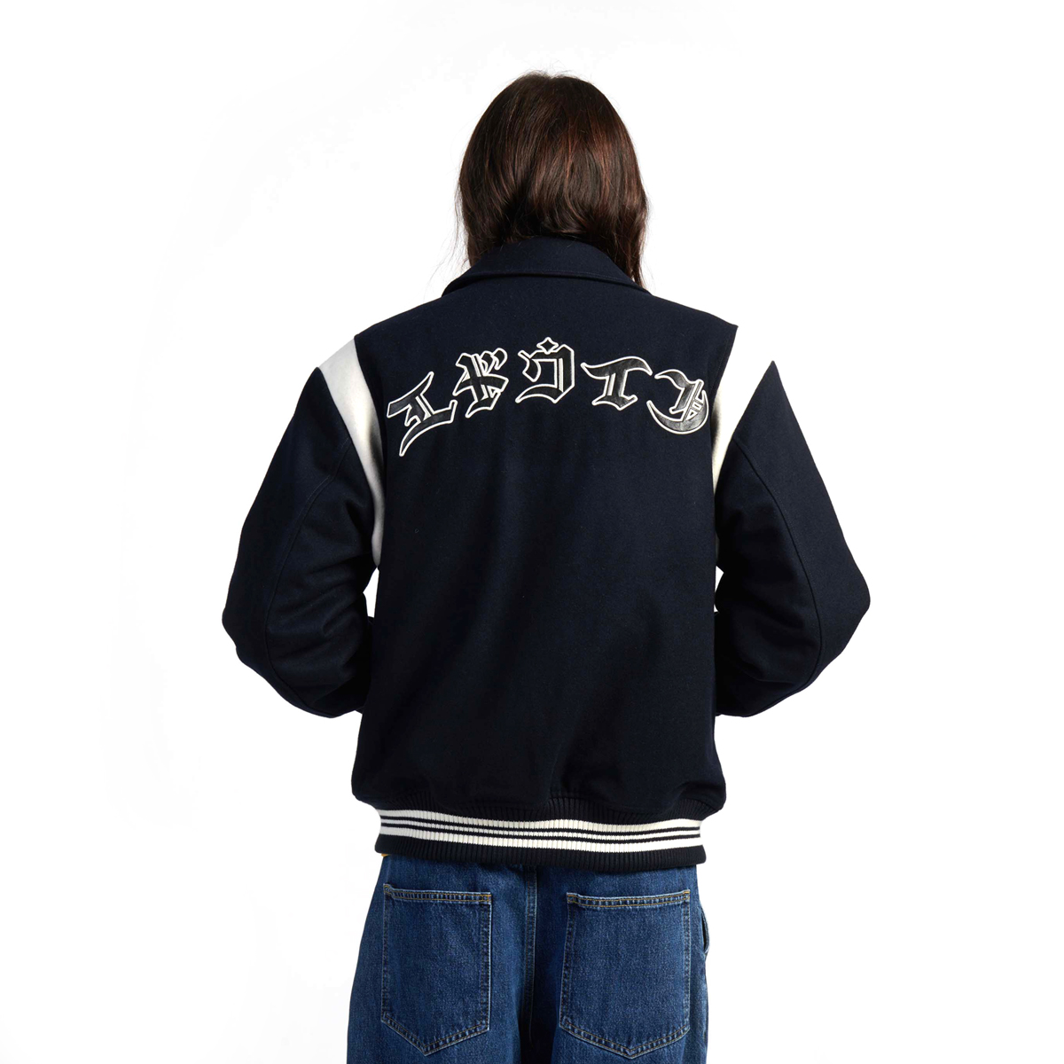 Das EDWIN Campus Jacket ist ein leicht oversized geschnittenes und gefüttertes College Jacket mit 2 seitlichen Taschen und einem EDWIN SUPPLY Artwork auf der Front und einem großen EDWIN Schriftzug auf dem Rücken. Es besteht aus 650g/m² Compact Wool Cloth und hat eine durchgehende Druckknopfleiste. Das gesteppte Innenfutter ist aus 100% Polyester mit einer Polyester-Fütterung.