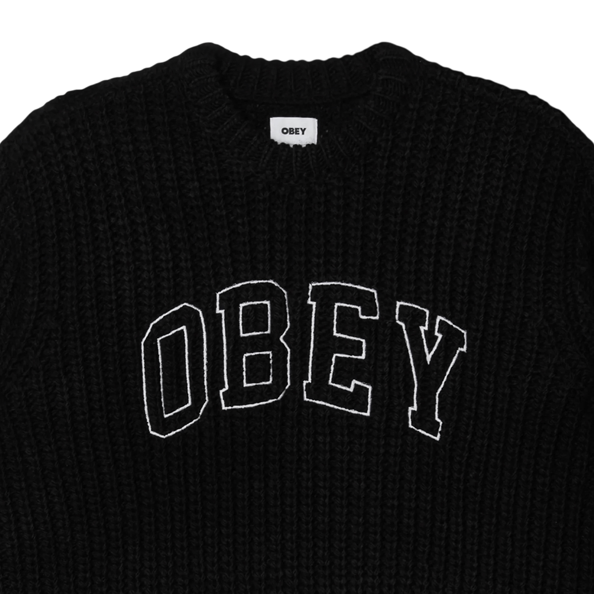 Warmer OBEY Collegiate Strick-Sweater aus einem Acryl/Wolle Mix mit gesticktem Logo Artwork.