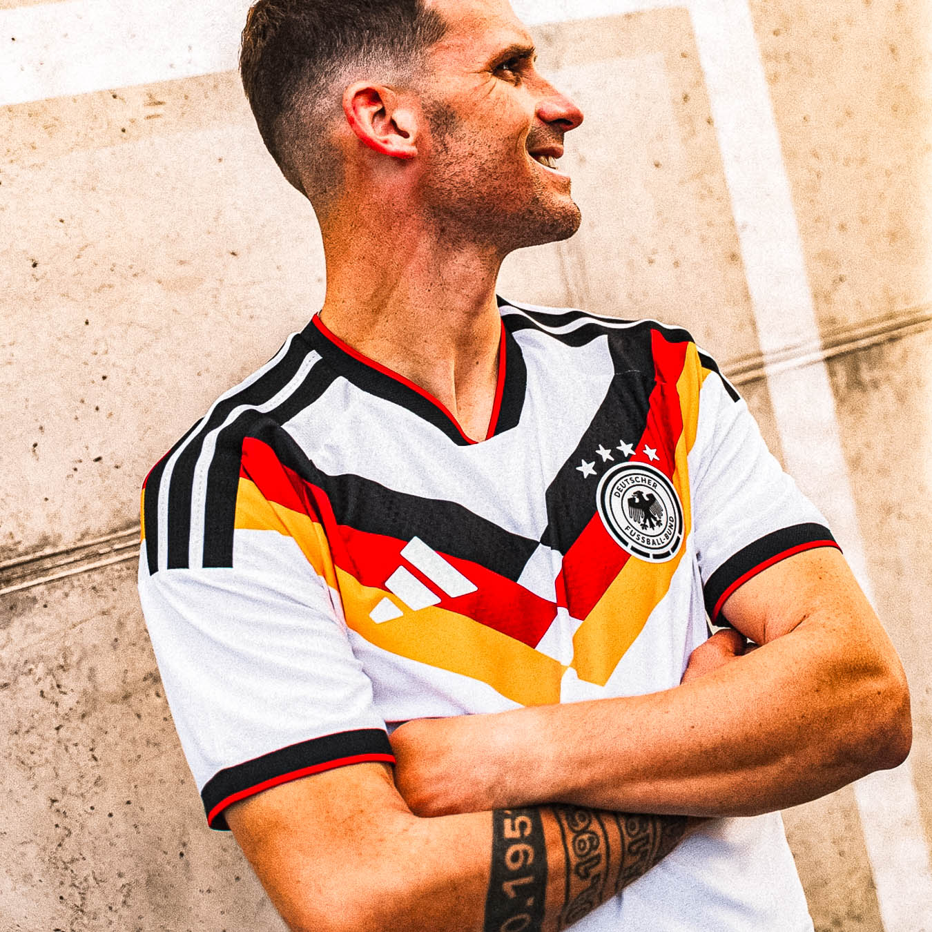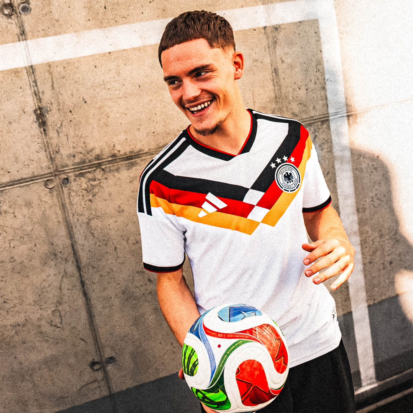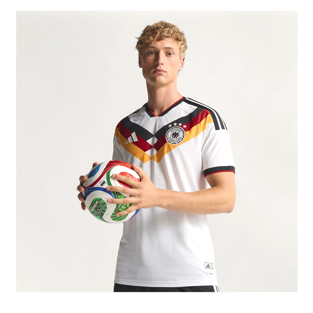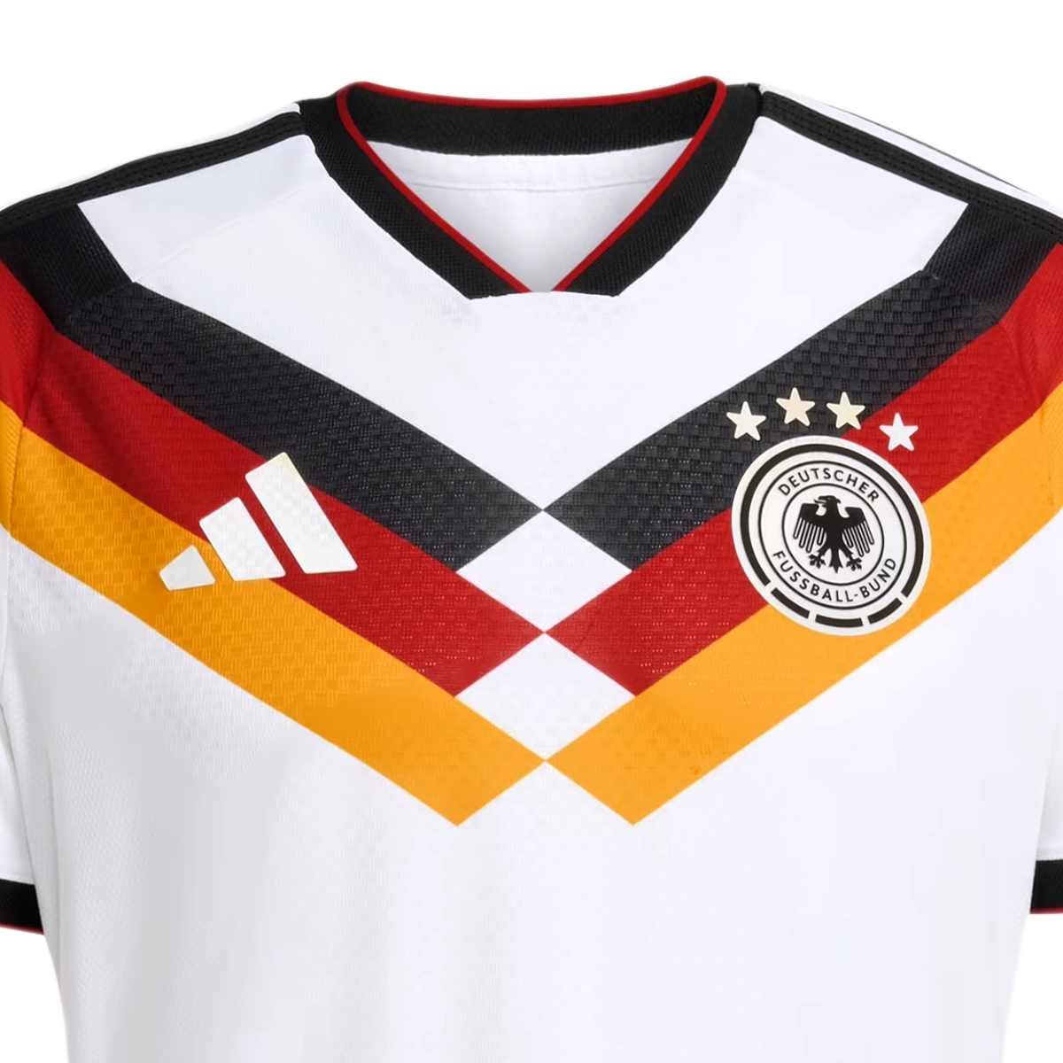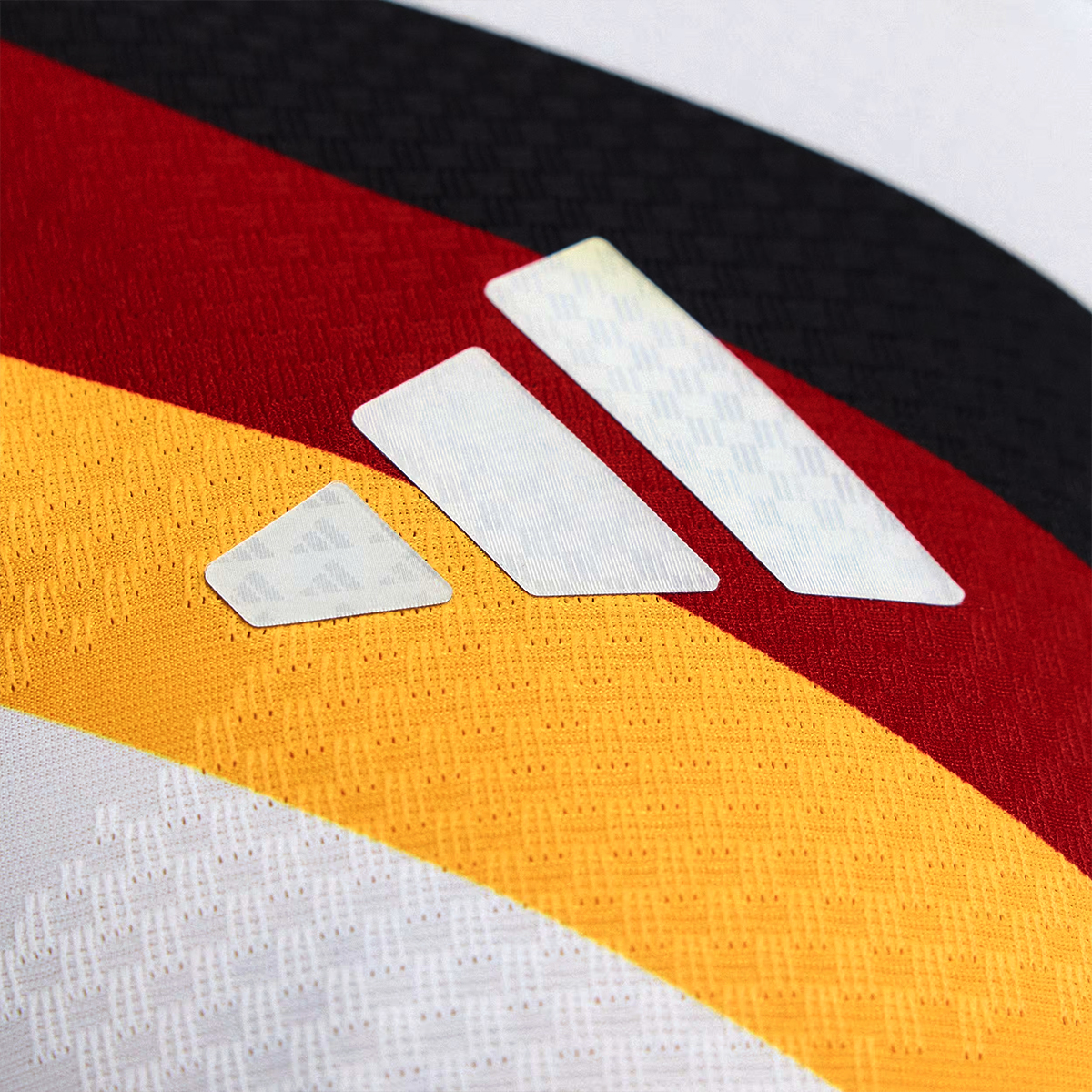 Das authentische Deutschland 26 Heimtrikot ist ein Symbol für das Erbe und die Innovation des Fußballs. Als Symbol für die Zukunft zieht das Design dieses Jerseys seine Inspiration aus ikonischen Momenten