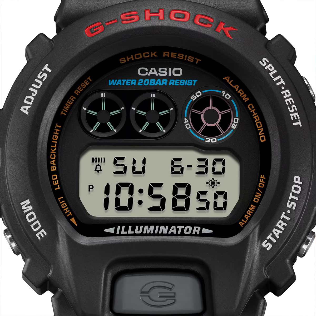 Die legendäre G-SHOCK DW-6900 erlangte in den 1990er-Jahren große Popularität und wurde zu einer Ikone dieser Zeit. Das große LCD-Display und die LED-Hintergrundbeleuchtung machen dieses äußerst vielseitige Design zu einem All-Day_eVery-Day Klassiker.