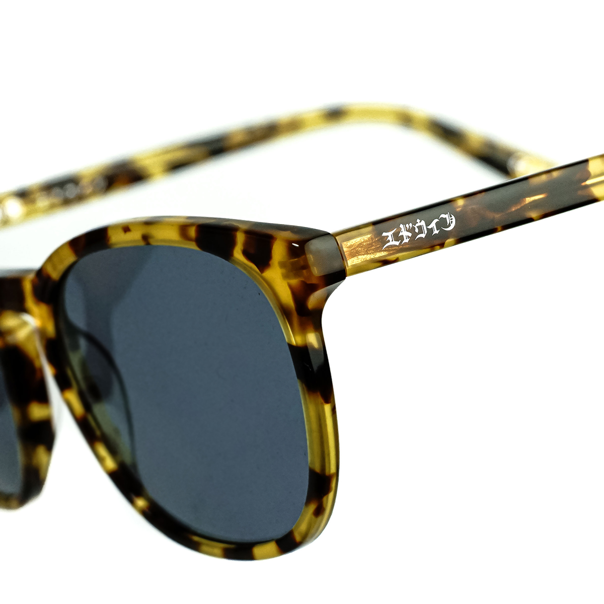 Die EDWIN x MESSY WEEKEND Sean Sonnenbrille kommt mit einem kleinen EDWIN Schriftzug an den Außenseiten der Bügel.