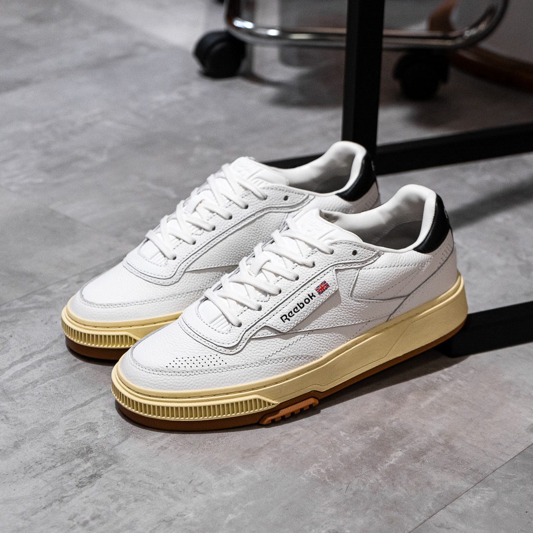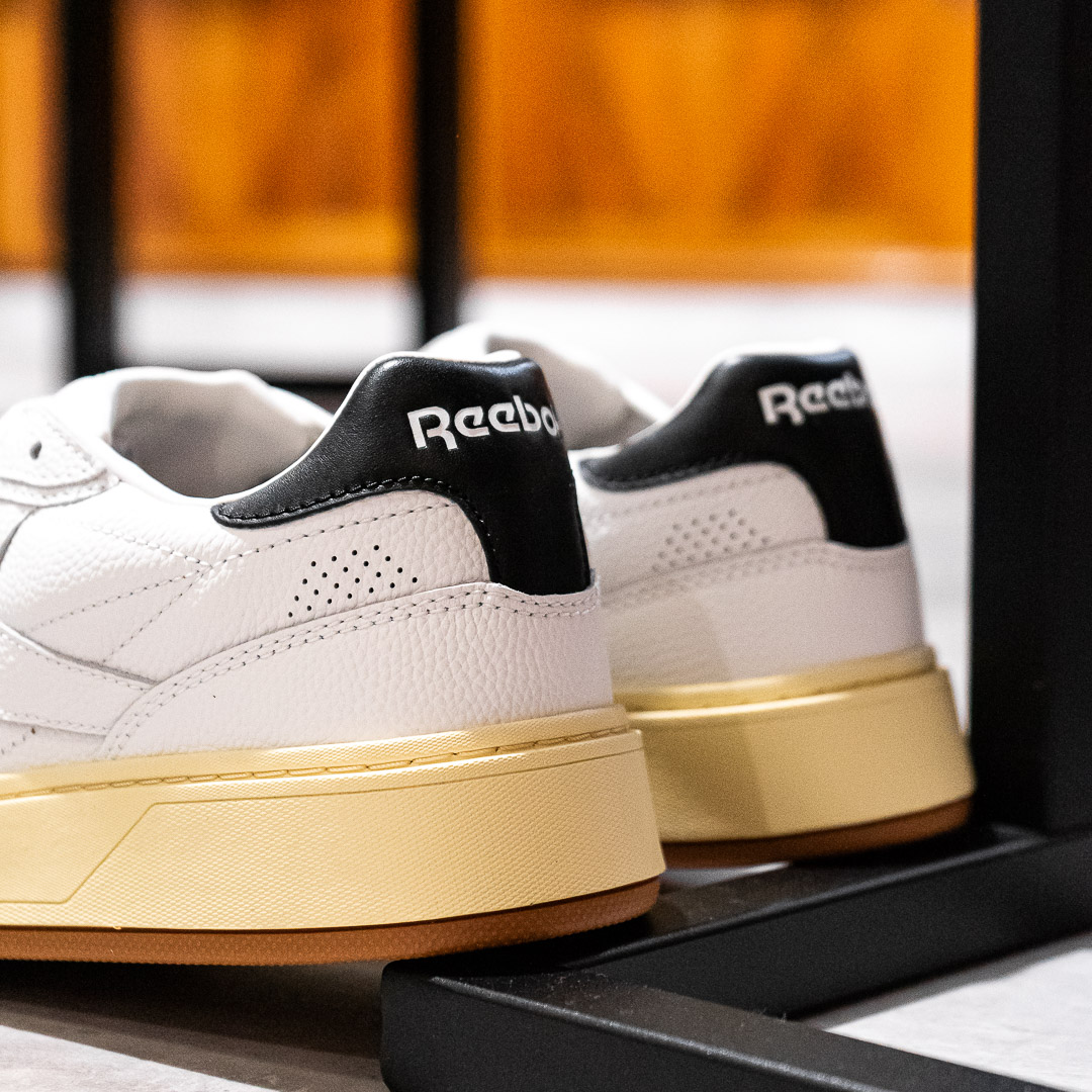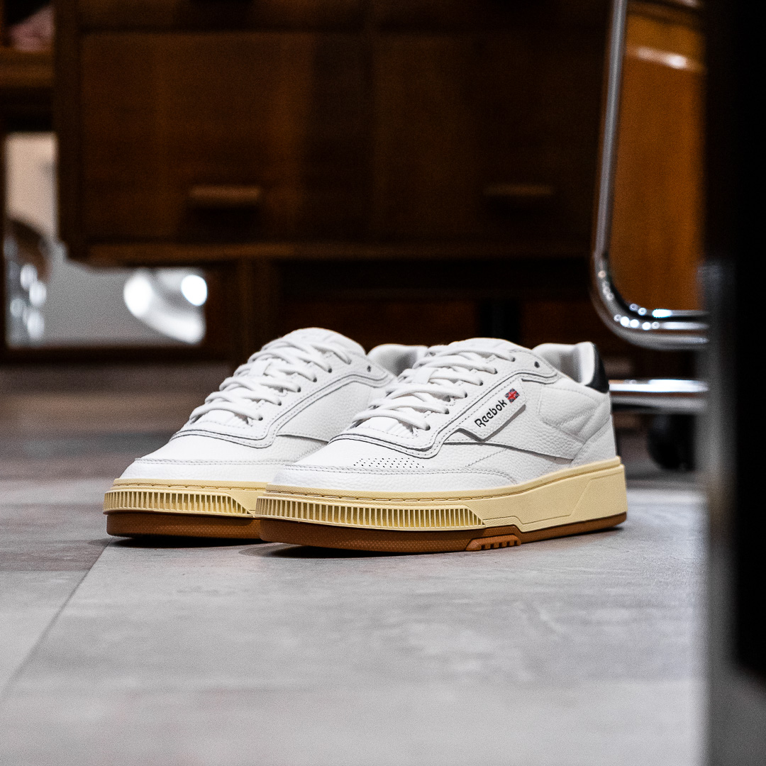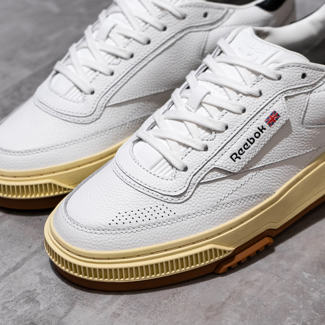 The Club C LTD is a contemporary take on the vintage tennis-inspired sneaker from 1985. This leather version is detailed with khaki-green accents, while the sole extends at the front with a distinctive ridged bumper. But it's not all change: hallmark elements, like the retro logos, remain.