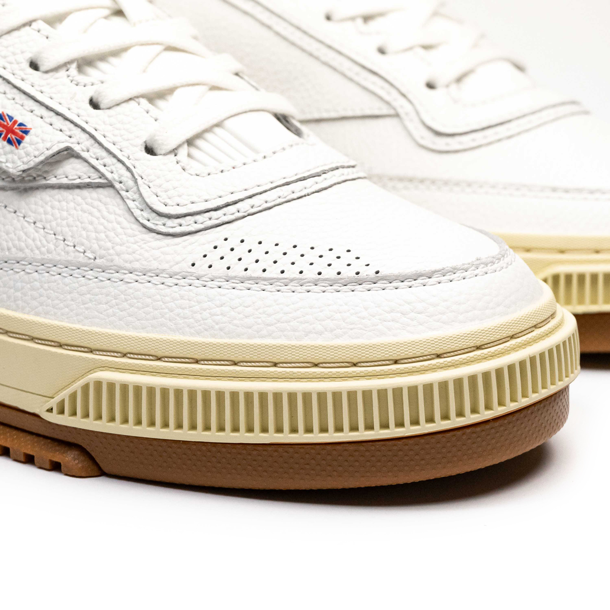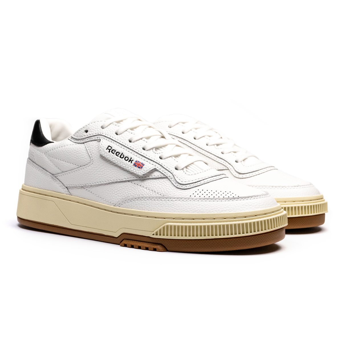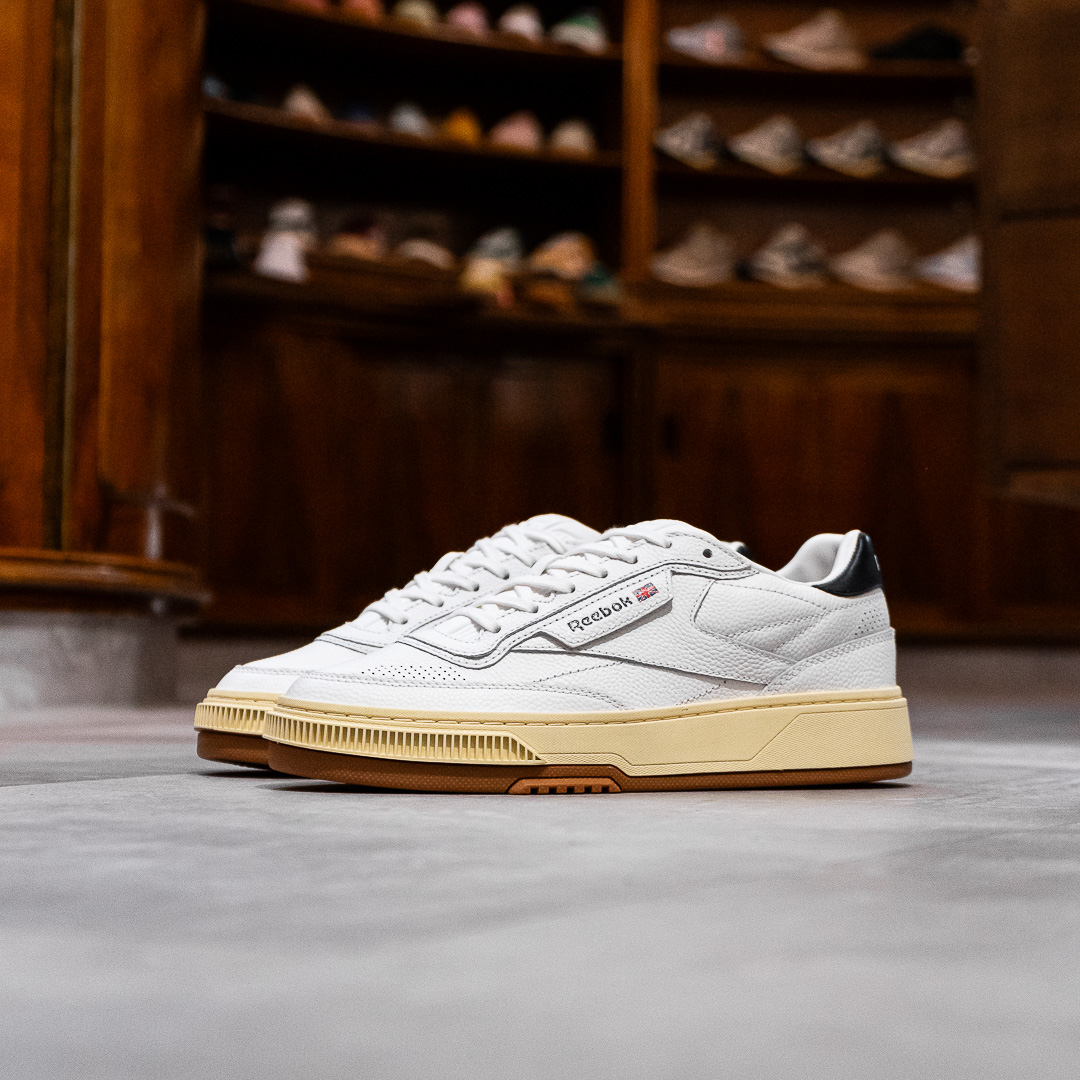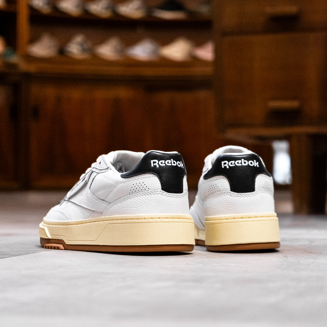 The Club C LTD is a contemporary take on the vintage tennis-inspired sneaker from 1985. This leather version is detailed with khaki-green accents, while the sole extends at the front with a distinctive ridged bumper. But it's not all change: hallmark elements, like the retro logos, remain.