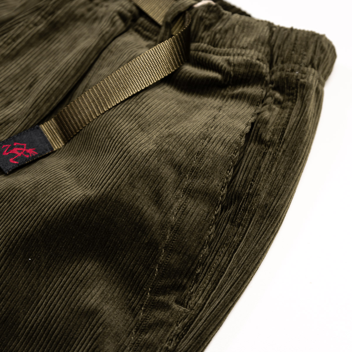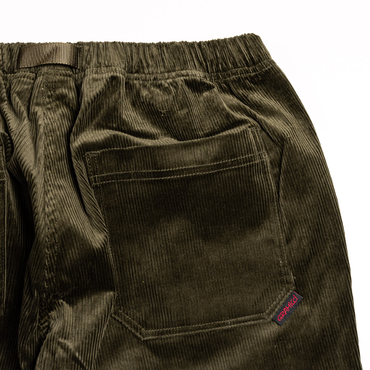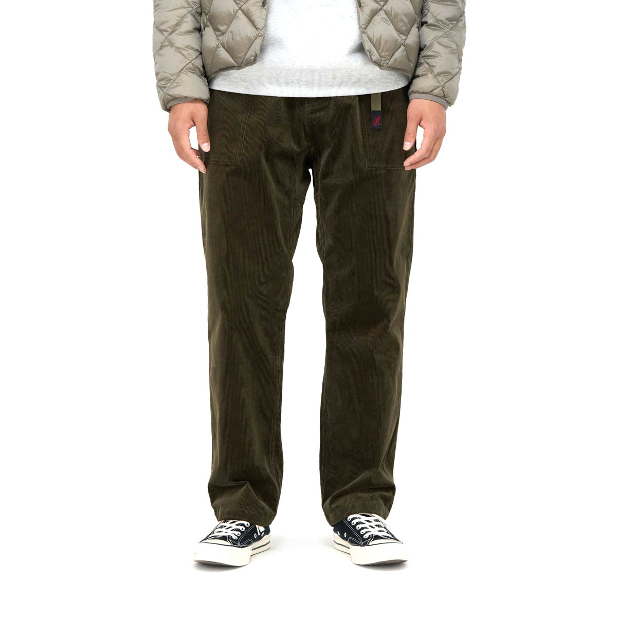 Gramicci's Curduroy Loose Tapered Ridge Pant features a gusset crotch and allows for 180 degree leg flexibility, and the webbing belt and relaxed-fit waist can be adjusted with one hand. Gramicci Pants that have been well-loved for many years are now available in stretch corduroy material that is perfect for fall and winter. They are made of classic corduroy with slightly large ridges, and the webbing belt is the same color as the body, giving them an elegant look.