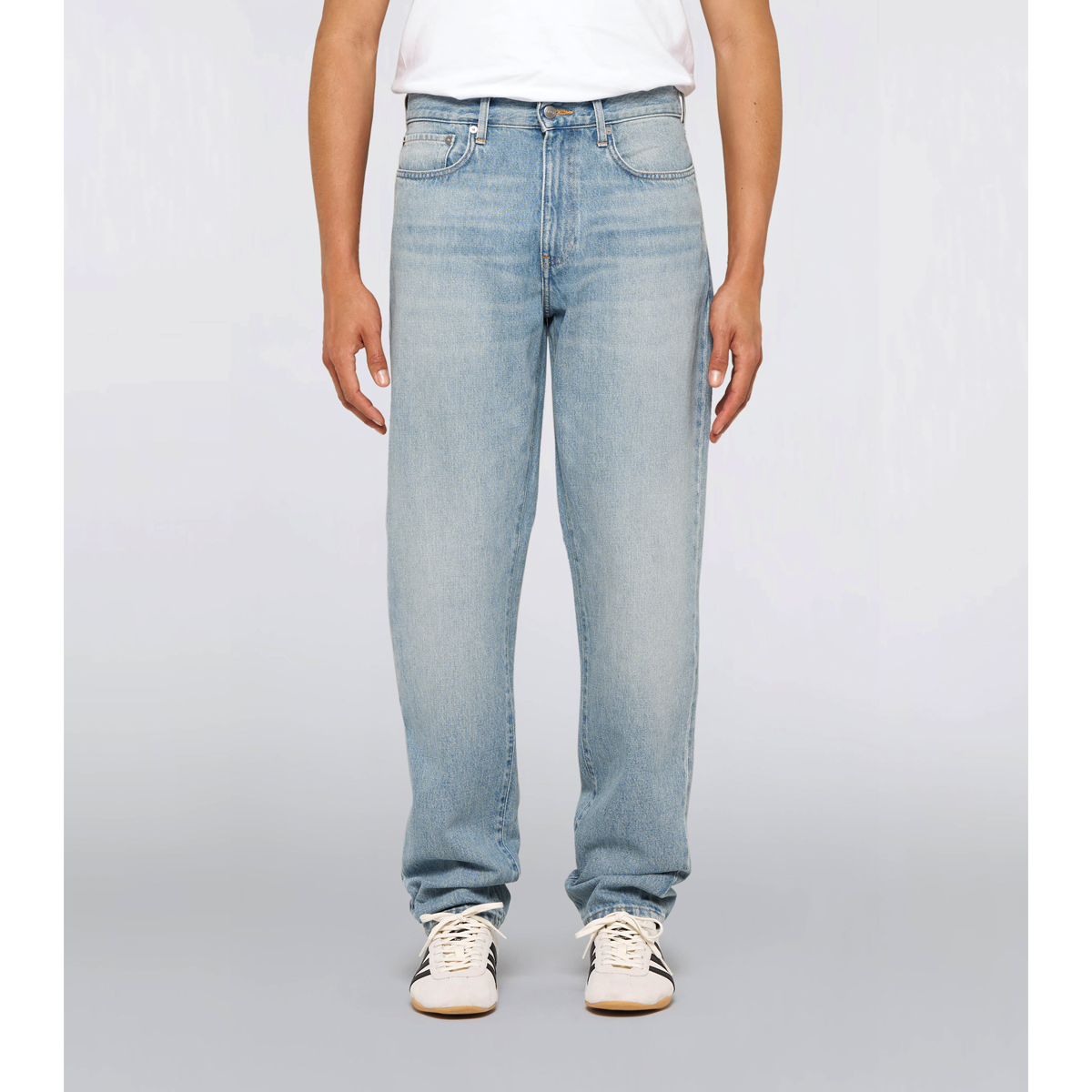 With classic five-pocket styling and a clean aesthetic, the Cosmos Pant offers a sharp, mid-rise reinterpretation of the classic denim cut. This pair is constructed from a robust cotton denim fabric treated with the Dimm Wash, resulting in a medium-blue shade, and features a distinctive cropped and tapered leg.