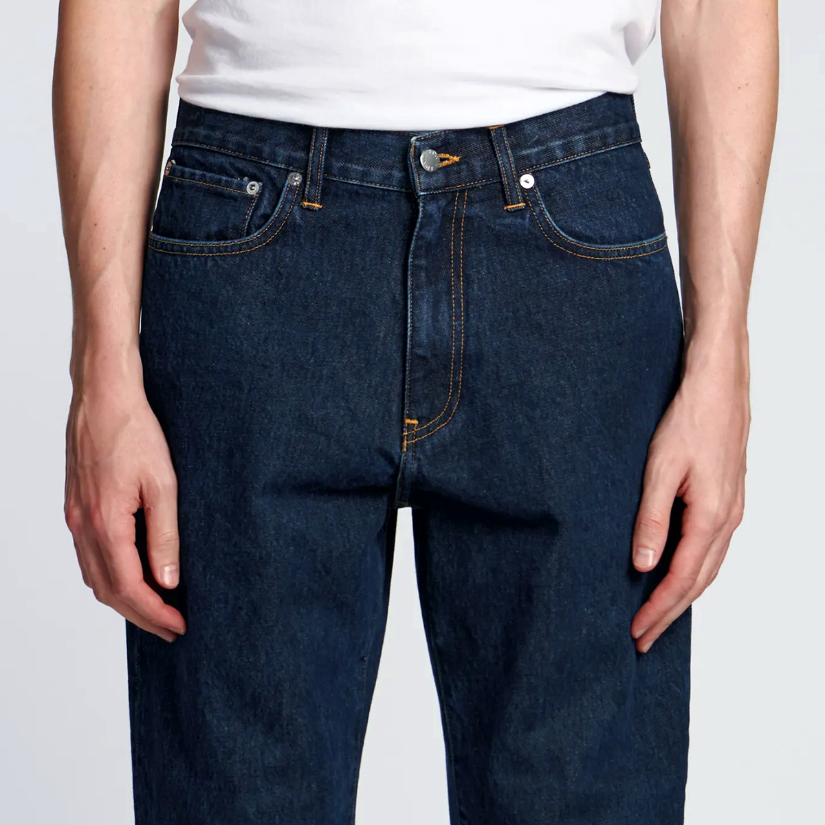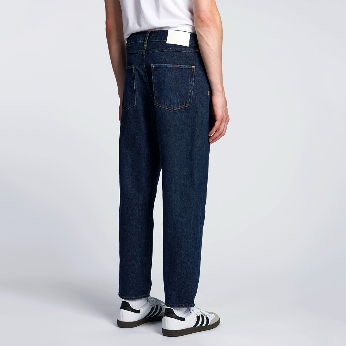 The EDWIN Cosmos Pant is a relaxed silhouette with a cropped and tapered leg, has a mid-rise and four pockets. They are made of a 14,6oz Arctic Blue Cotton Denim Fabric. The round cut thighs and hips provide a comfortable and spacious fit.