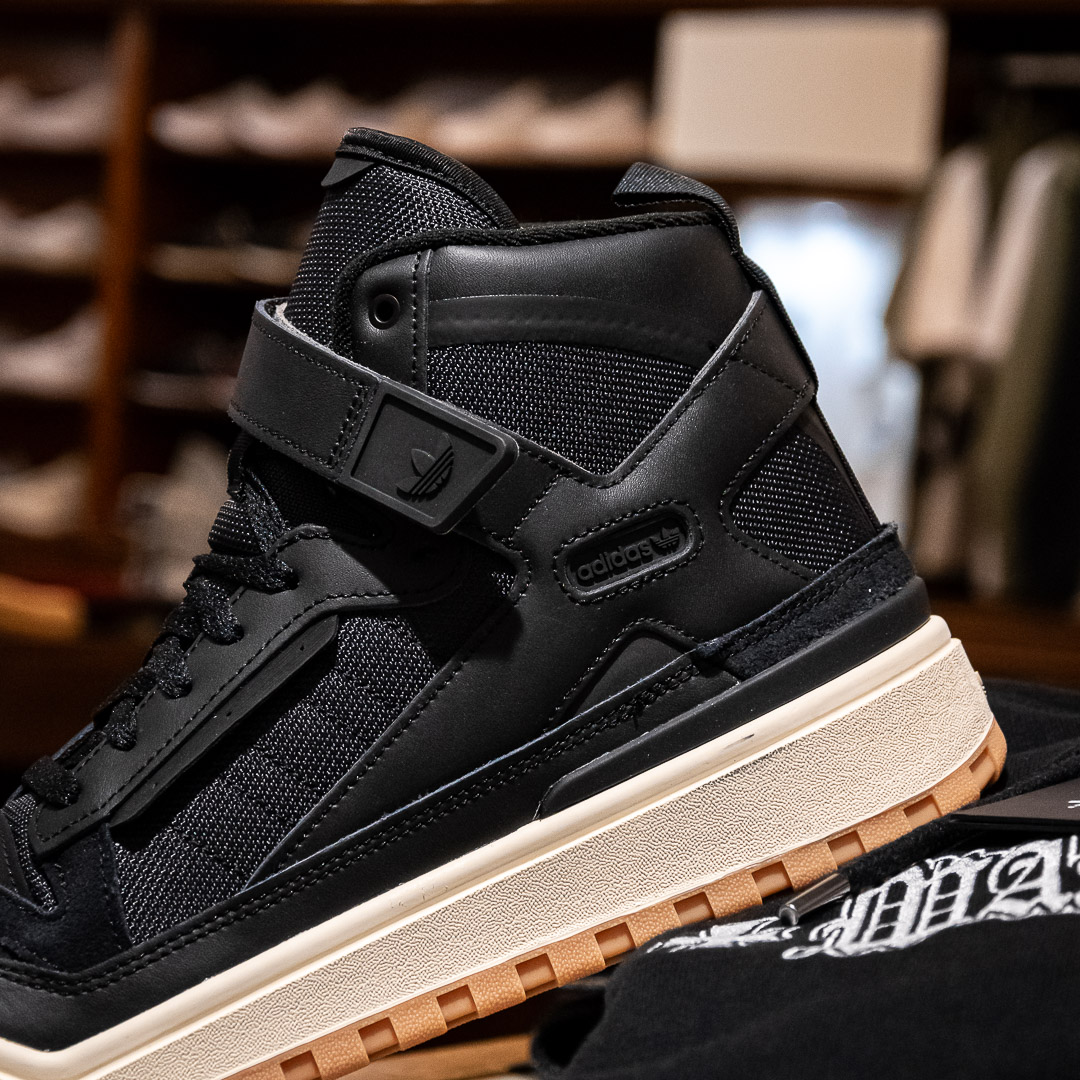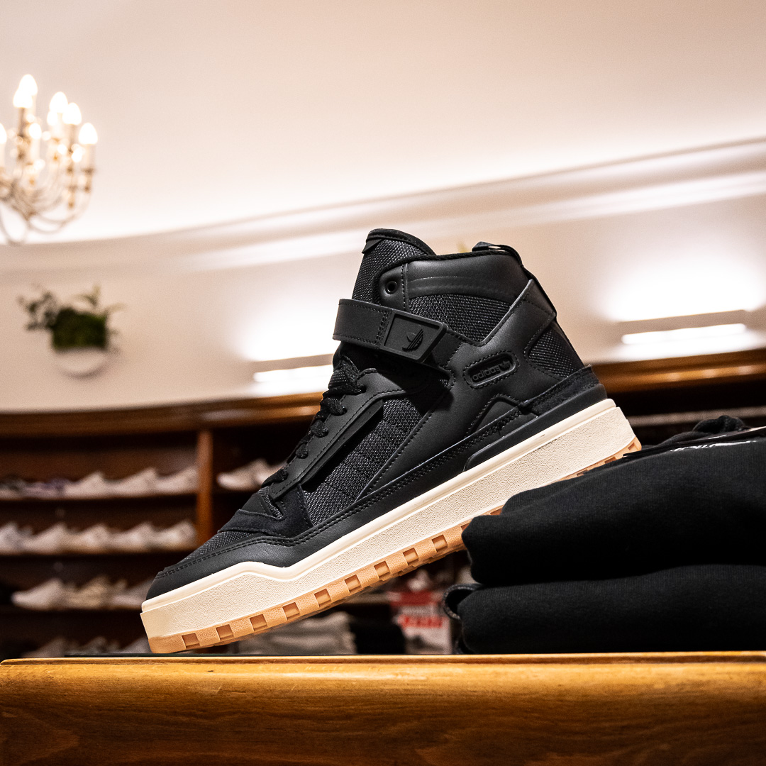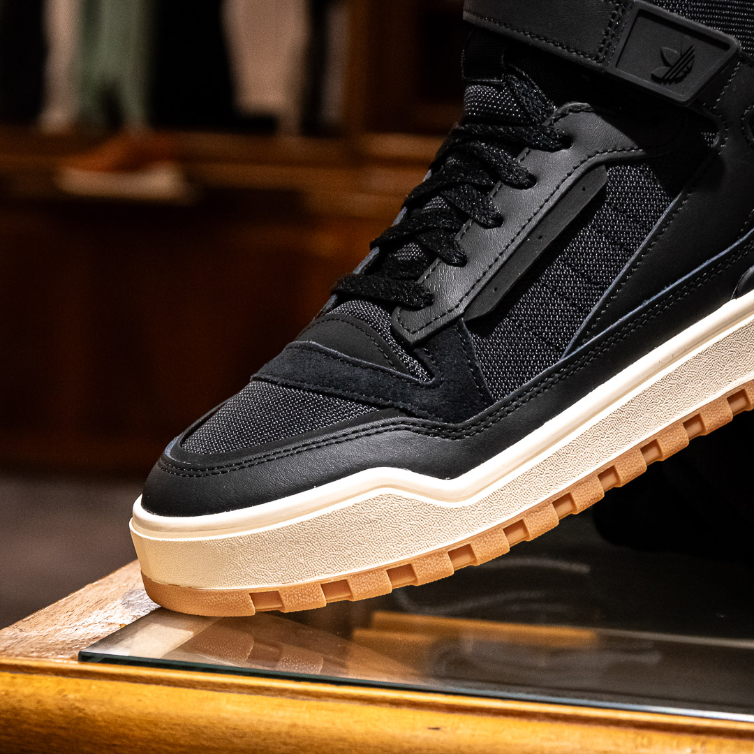 Dominating sports, music and fashion since the '80s the adidas Forum shoes have become a launchpad for progressive design. Next stop, the Forum boot. With a mix of leather, suede and ballistic nylon materials, and a hardy rubber outsole, these shoes are built tough and ready for cooler weather. Of course, the look wouldn't be complete without the iconic X-panel and hook-and-loop strap.