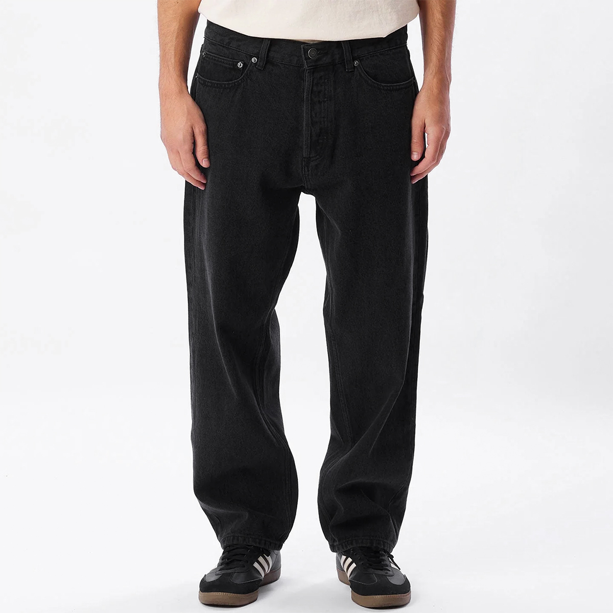 The OBEY Hardwork Pant is a relaxed-fitting pant with a slightly tapered leg and mid waist, made from a 13,5oz Faded Black Denim.