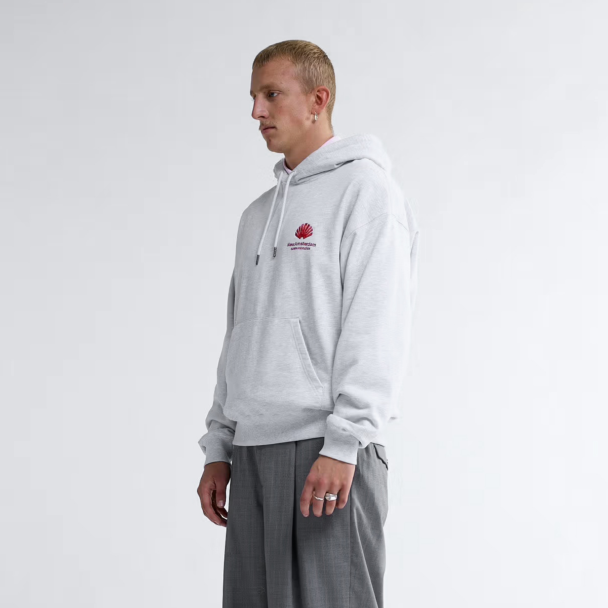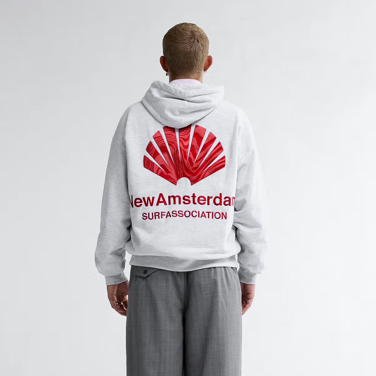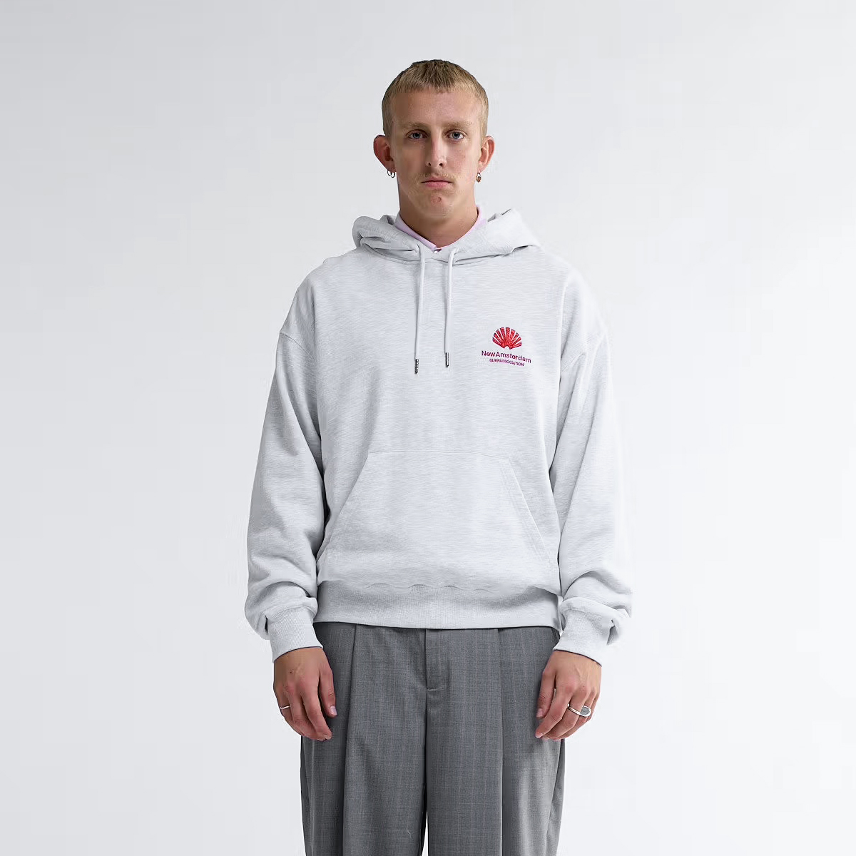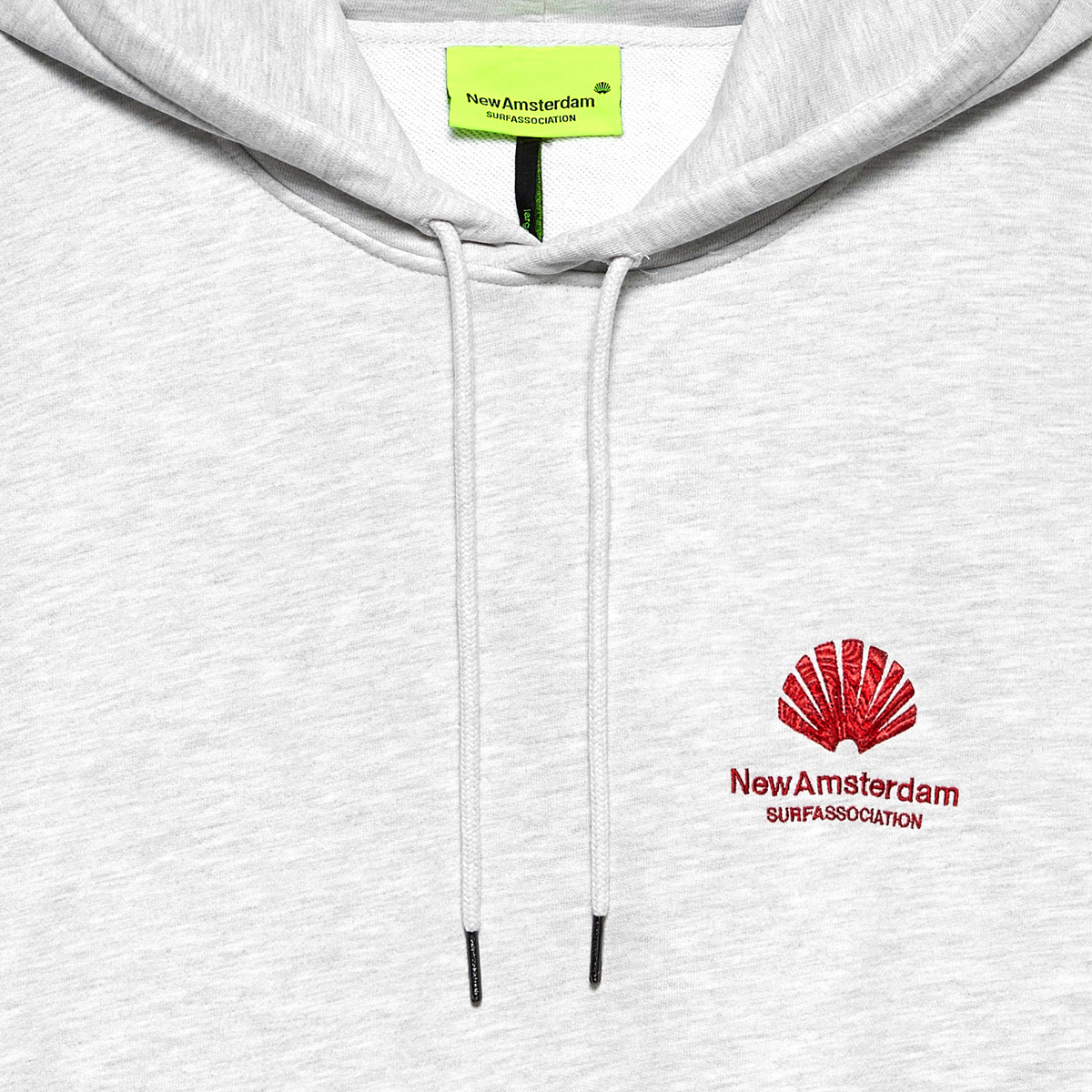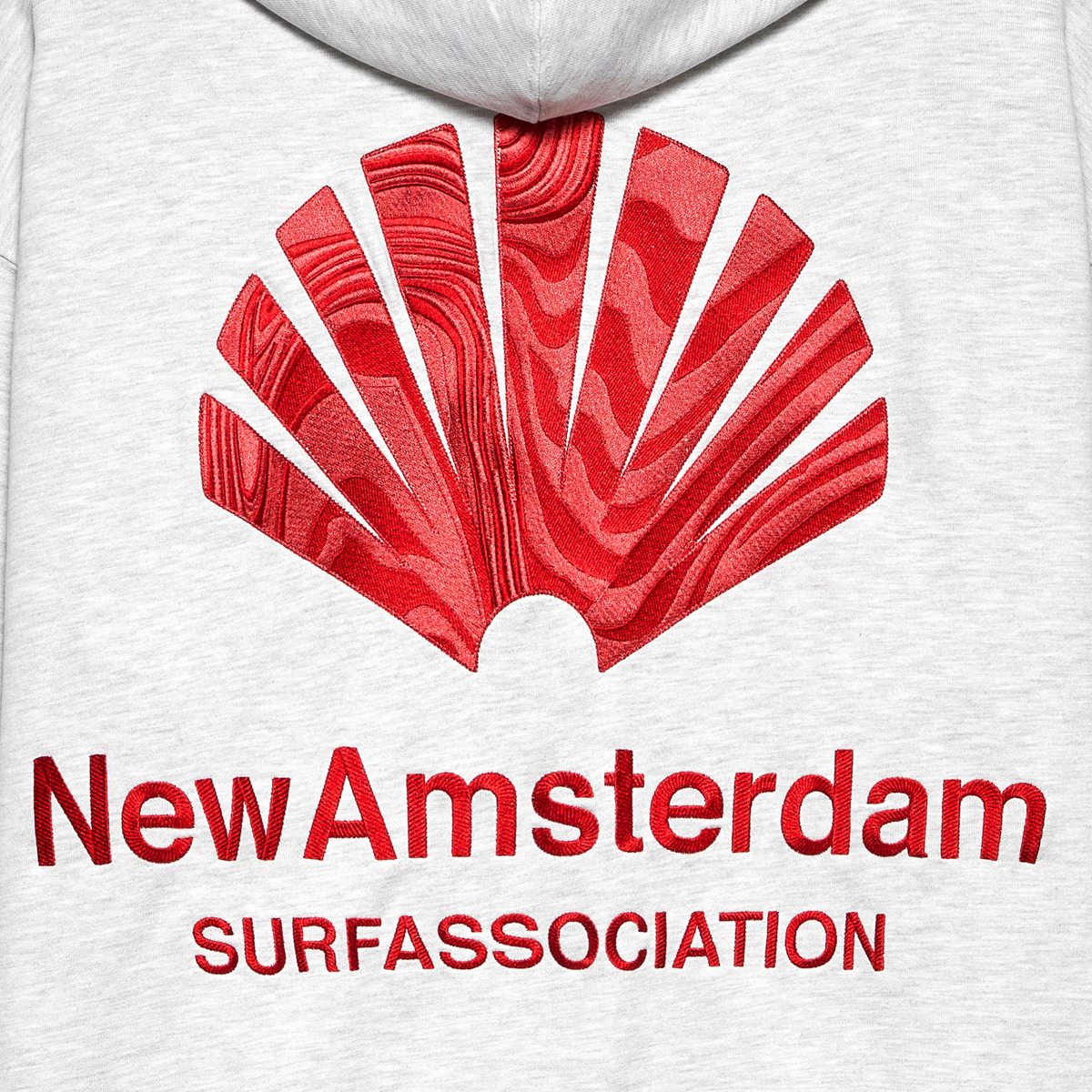 Hooded sweater, cut to a relaxed unisex fit. Detailed with the classic New Amsterdam logo embroidery on the front and back, made using two different colored yarns and varied embroidery structures. This hoodie is made out of a heavyweight 455 GSM cotton.