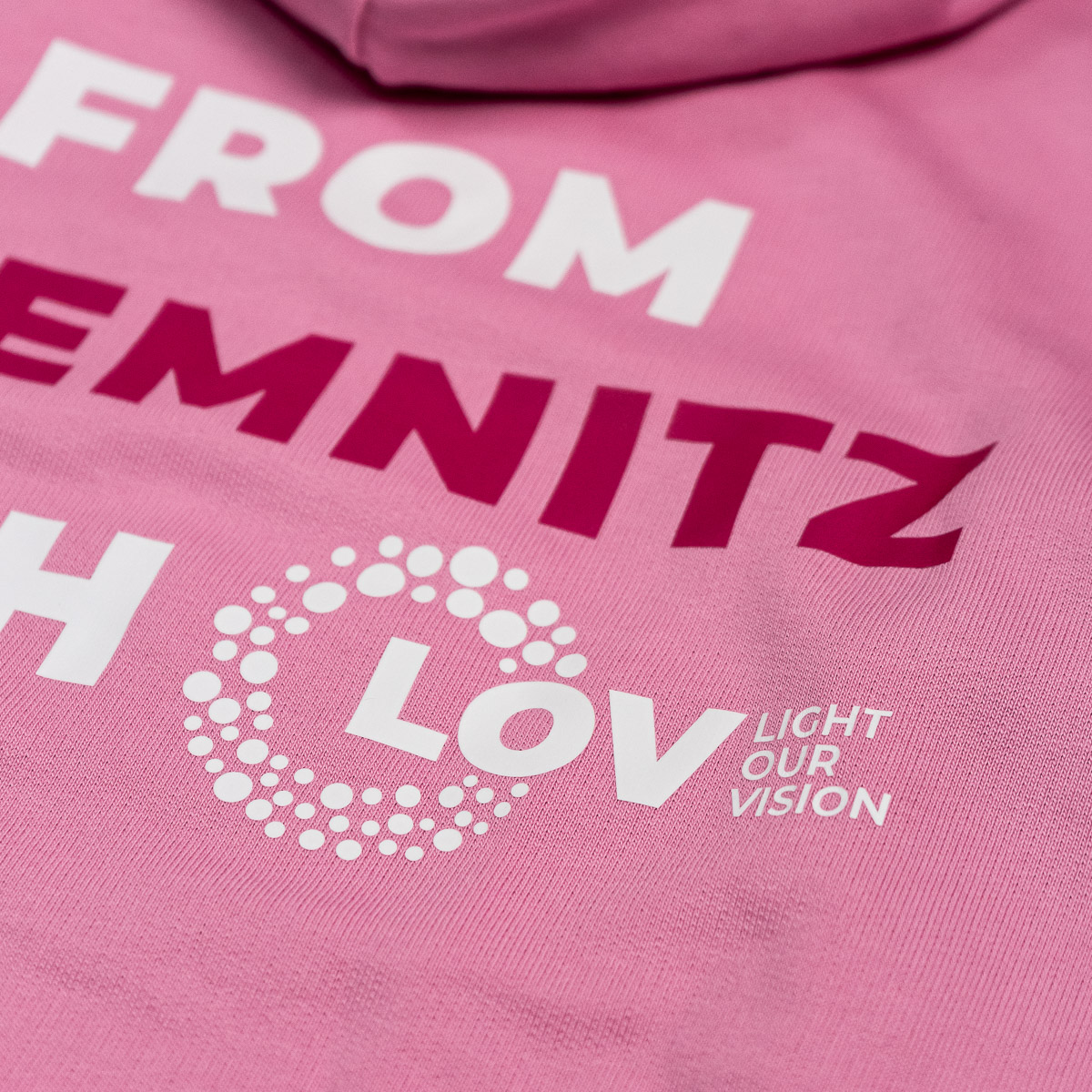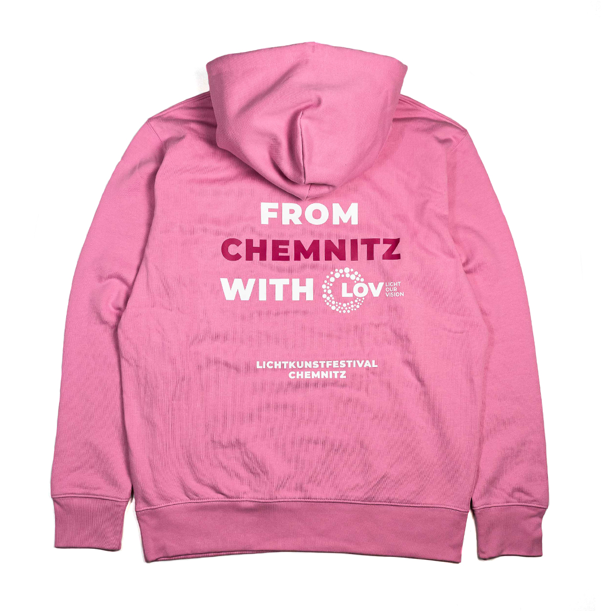 Exclusive LIGHT OUR VISION collection to celebrate the visual spectacle in the heart of Chemnitz. The LOV hoodie is made of 100% brushed back organic cotton with printed artwork on front and back.