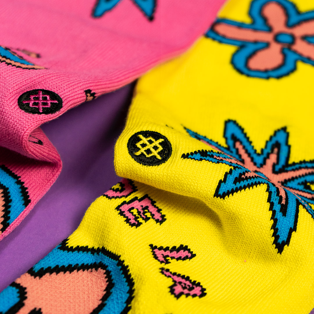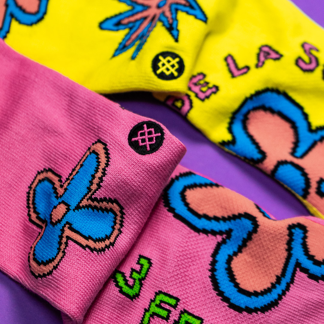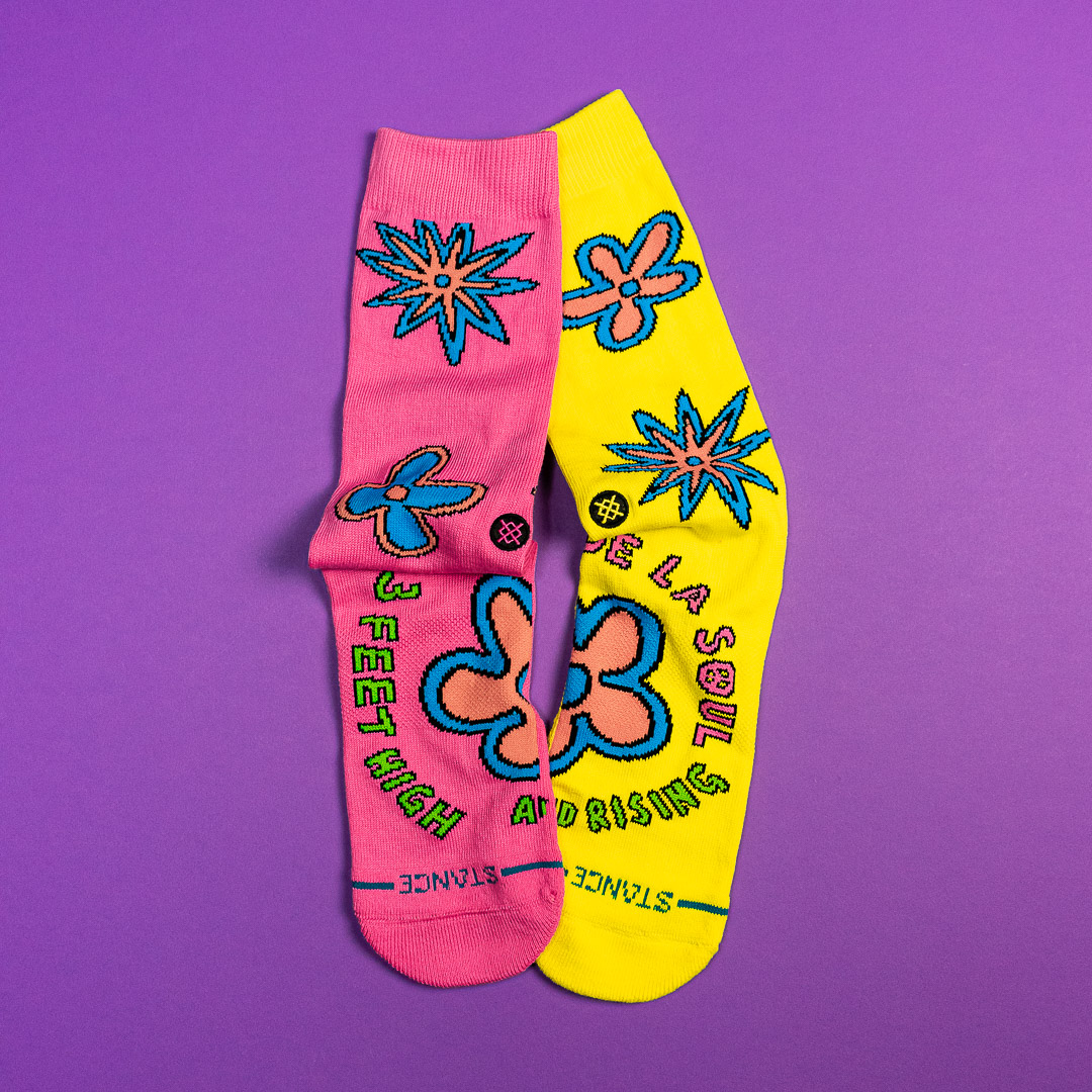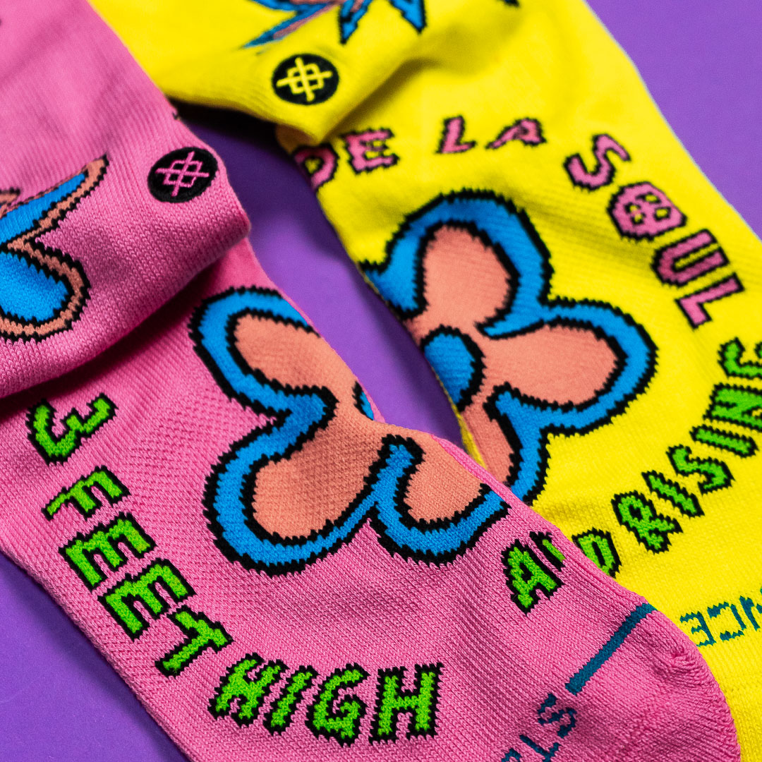 Product "Three Feet High Crew Socks - De La Soul- Pink Yellow"