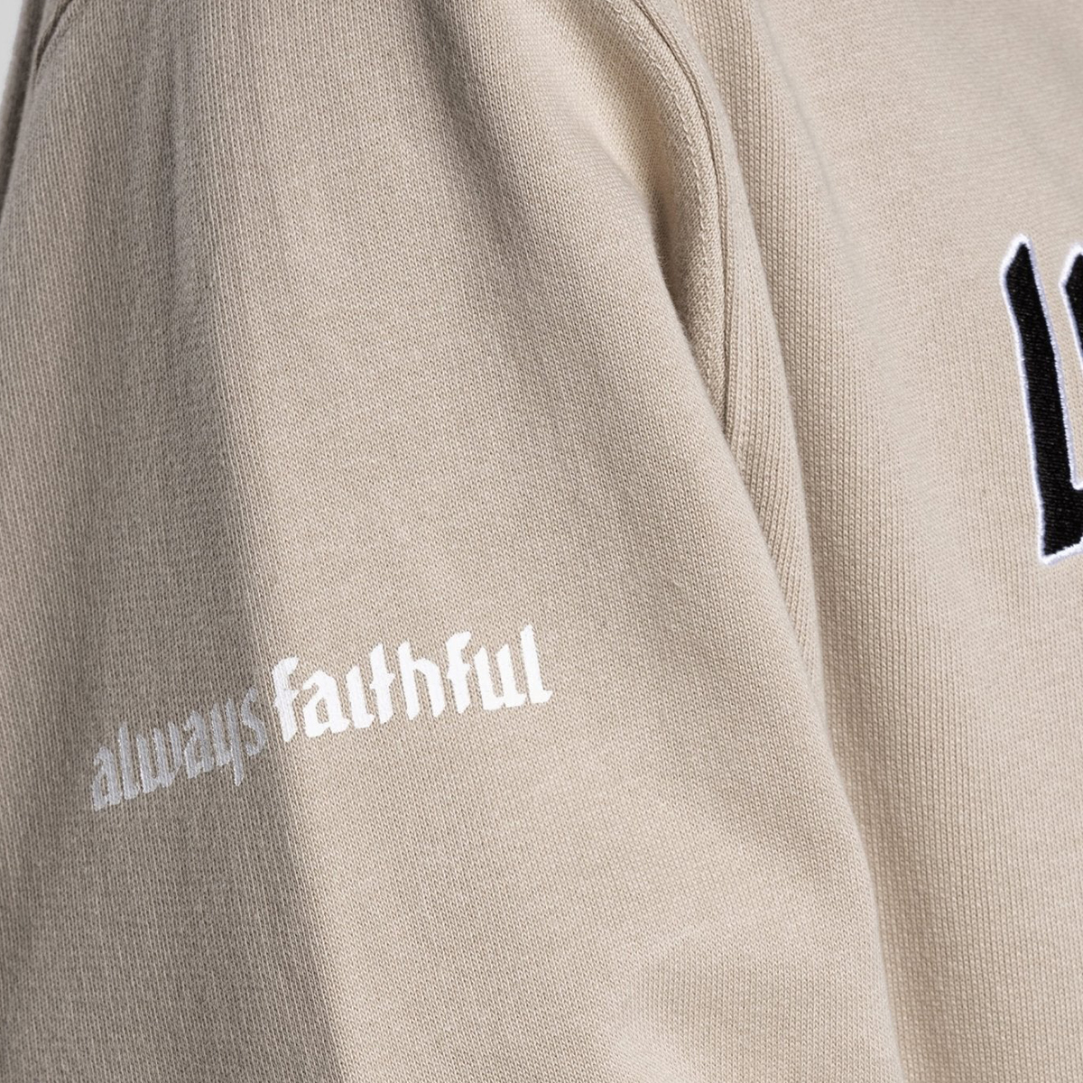 The United hoodie is made in a cotton fleece 350gr. It has a regular fit and displays the United logo in flat embroidery with satin stitch on the front and the tagline "Always Faithful" screen-printed on the sleeves.