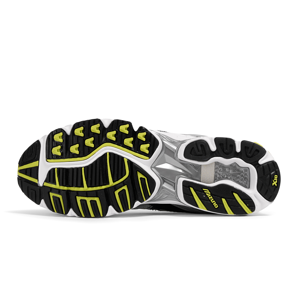 X10 - An extremely durable Mizuno carbon rubber that allows for longer wear in high impact areas and gives more traction at the heel strike