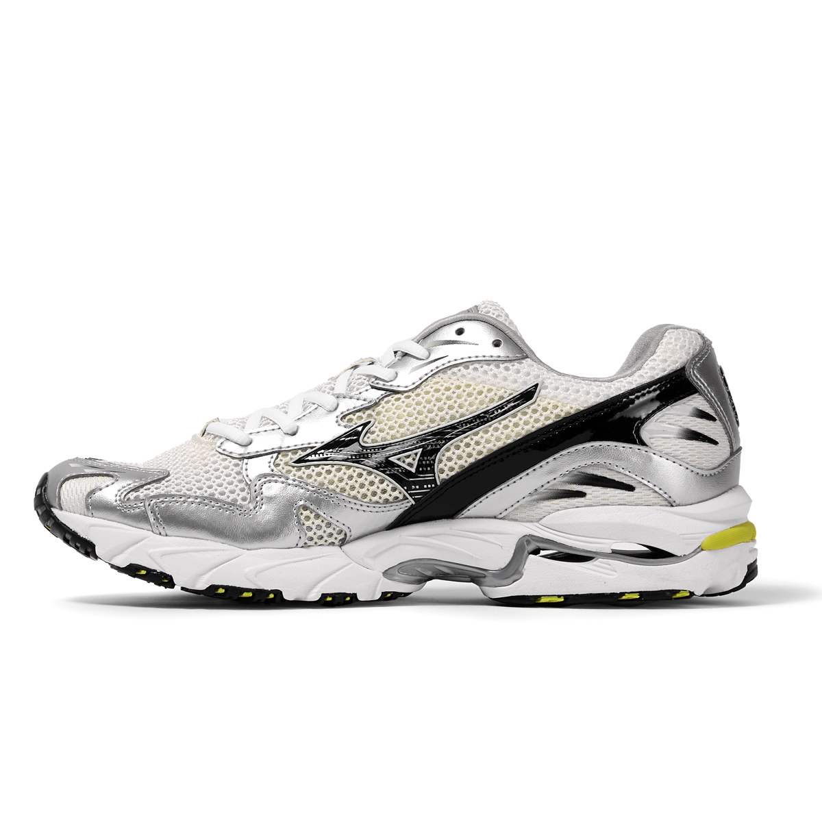 Wave Rider 10 reflects the Mizuno’s rare ability to balance between embracing heritage and striving towards a fresh perspective better than any other. The Japanese soul of this creation is reflected in the way the heritage of the brand is infused with a modern aesthetic. Wave Rider 10 was first released in 2007, 10 years after the technology first appeared on the market, and it improved on the original thanks to a compound of shock absorbers, which guaranteed smooth transition in movement. The technical version sports an upper in OG open mesh, with OG shiny and metallic effect overlay, and an injected printed Runbird logo on the side, a debossed and printed tongue patch, heel jewel and white X10 outsole.