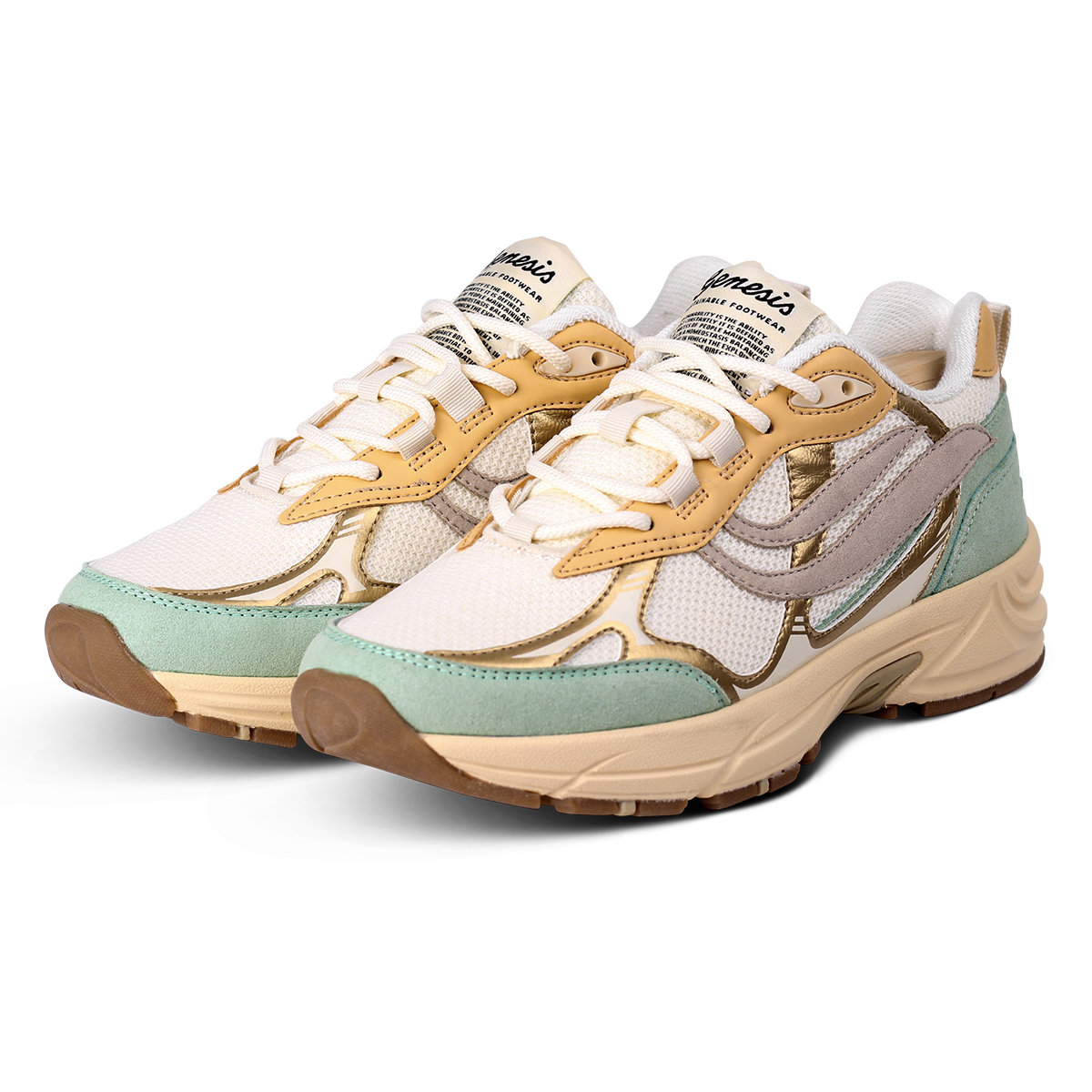 Alle Materialien stammen von BSCI Fairtrade-zertifizierten Lieferanten, die ethische und faire Arbeitsbedingungen während des gesamten Produktionsprozesses sicherstellen. GENESIS's Mission konzentriert sich auf Nachhaltigkeit und Langlebigkeit, um komfortable und langlebige Schuhe anzubieten.