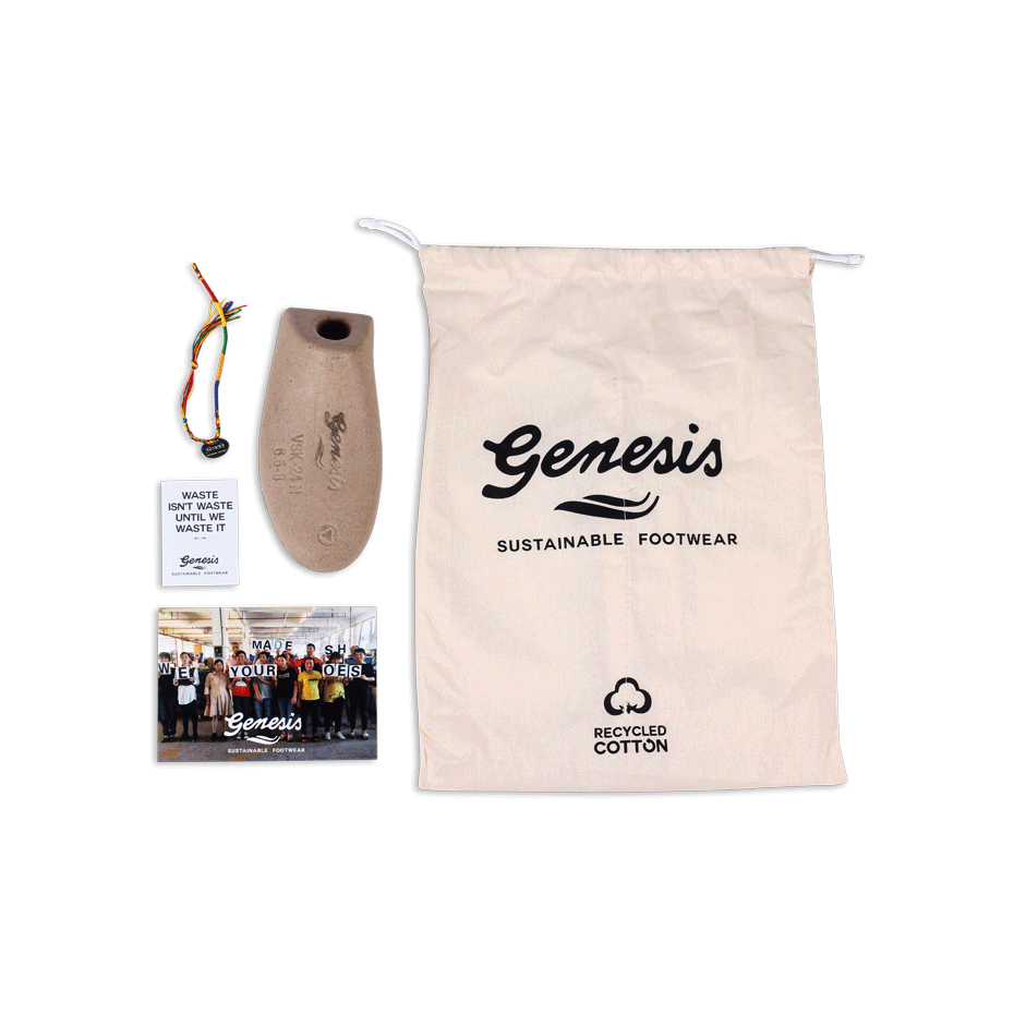 Alle Materialien stammen von BSCI Fairtrade-zertifizierten Lieferanten, die ethische und faire Arbeitsbedingungen während des gesamten Produktionsprozesses sicherstellen. GENESIS's Mission konzentriert sich auf Nachhaltigkeit und Langlebigkeit, um komfortable und langlebige Schuhe anzubieten.