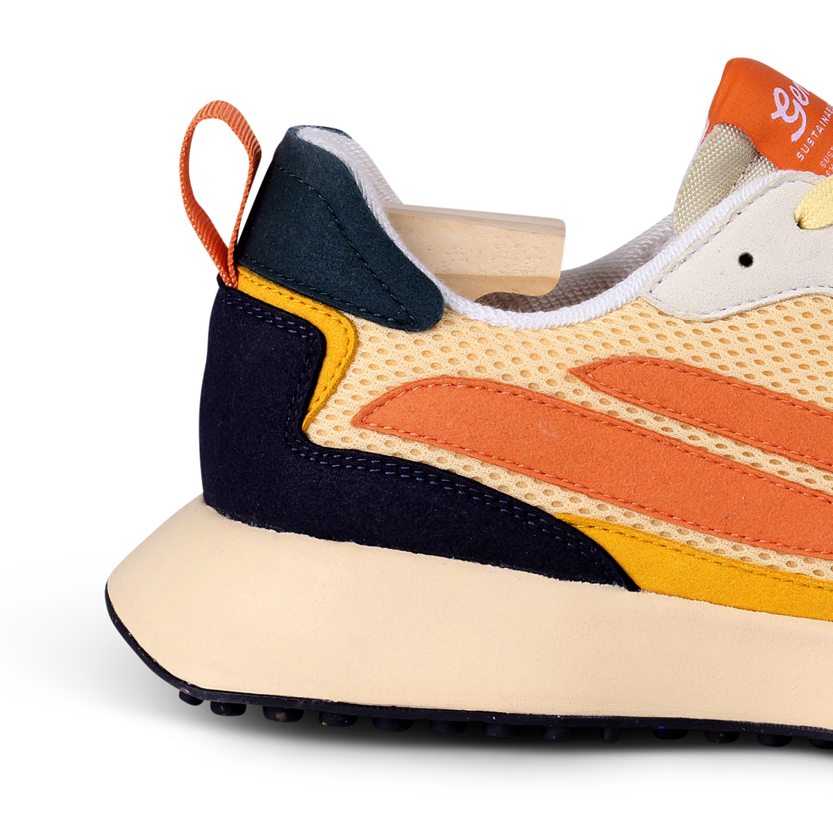 Das Obermaterial des GENESIS G-Marathon Multi Mesh besteht aus BIOWAVE™ Sugar Cane – veganes Veloursleder aus Zuckerrohr und recyceltem PET. Die bequeme Einlegesohle besteht aus einer Mischung aus recyceltem PU-Schaum und FSC-zertifiziertem Kork für außergewöhnlichen Komfort. Die Laufsohle besteht aus mindestens 40% Naturkautschuk aus nachhaltigem Anbau, ergänzt mit 10% recyceltem PET.