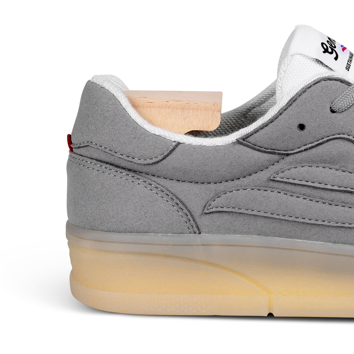 Das Obermaterial des GENESIS G-Soley Hevea Rubber besteht aus BIOWAVE™ Cornwaste – veganes Veloursleder aus Maisabfällen und recyceltem PET. Die bequeme Einlegesohle besteht aus einer Mischung aus recyceltem PU-Schaum und FSC-zertifiziertem Kork für außergewöhnlichen Komfort. Die Laufsohle besteht ausschließlich aus Hevea-Naturkautschuk.