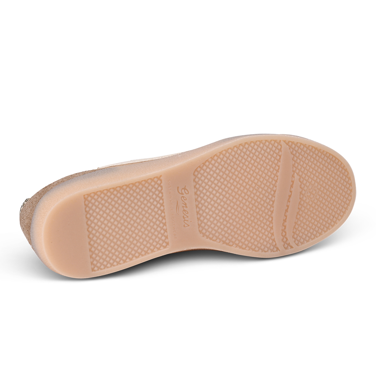 Alle Materialien stammen von BSCI Fairtrade-zertifizierten Lieferanten, die ethische und faire Arbeitsbedingungen während des gesamten Produktionsprozesses sicherstellen. GENESIS's Mission konzentriert sich auf Nachhaltigkeit und Langlebigkeit, um komfortable und langlebige Schuhe anzubieten.