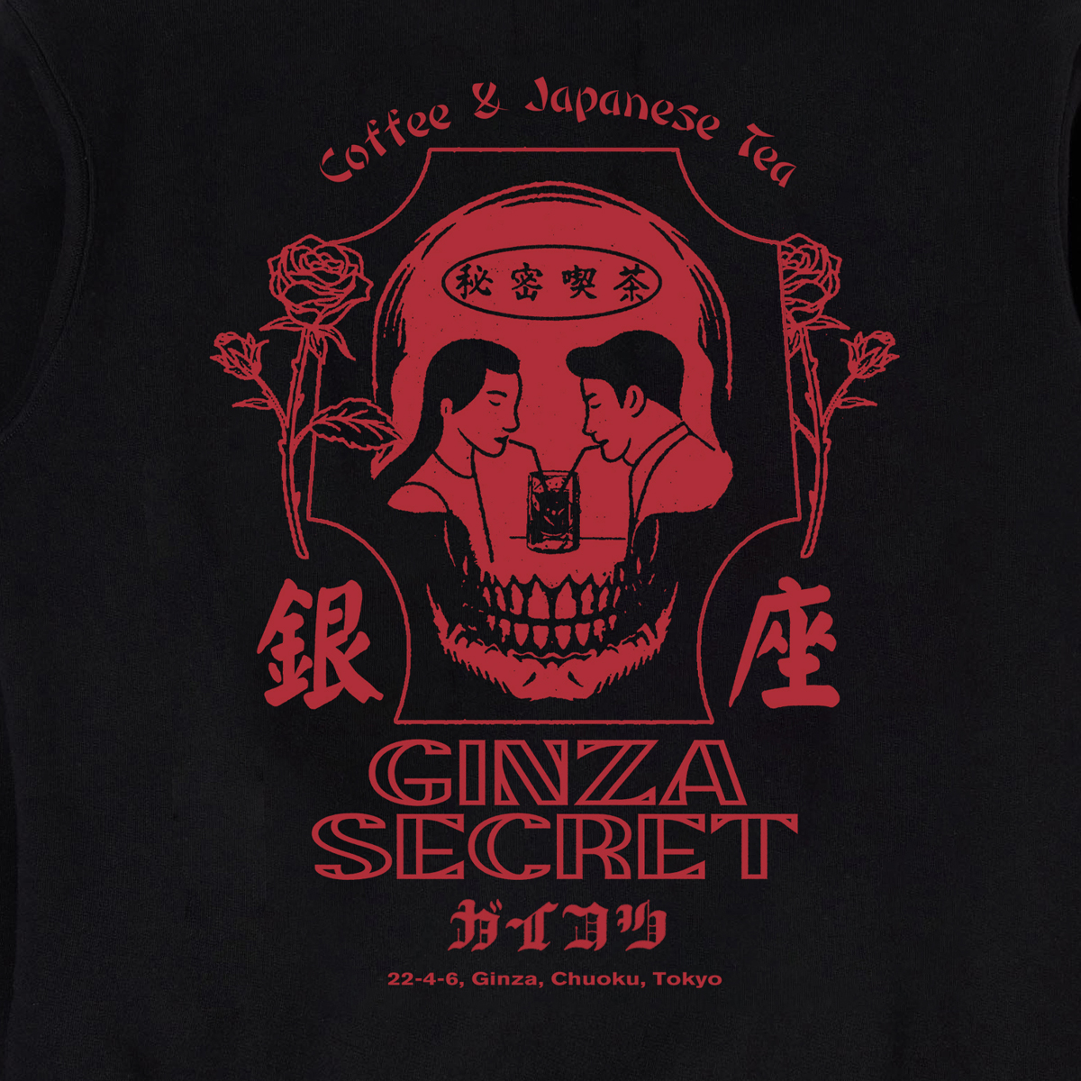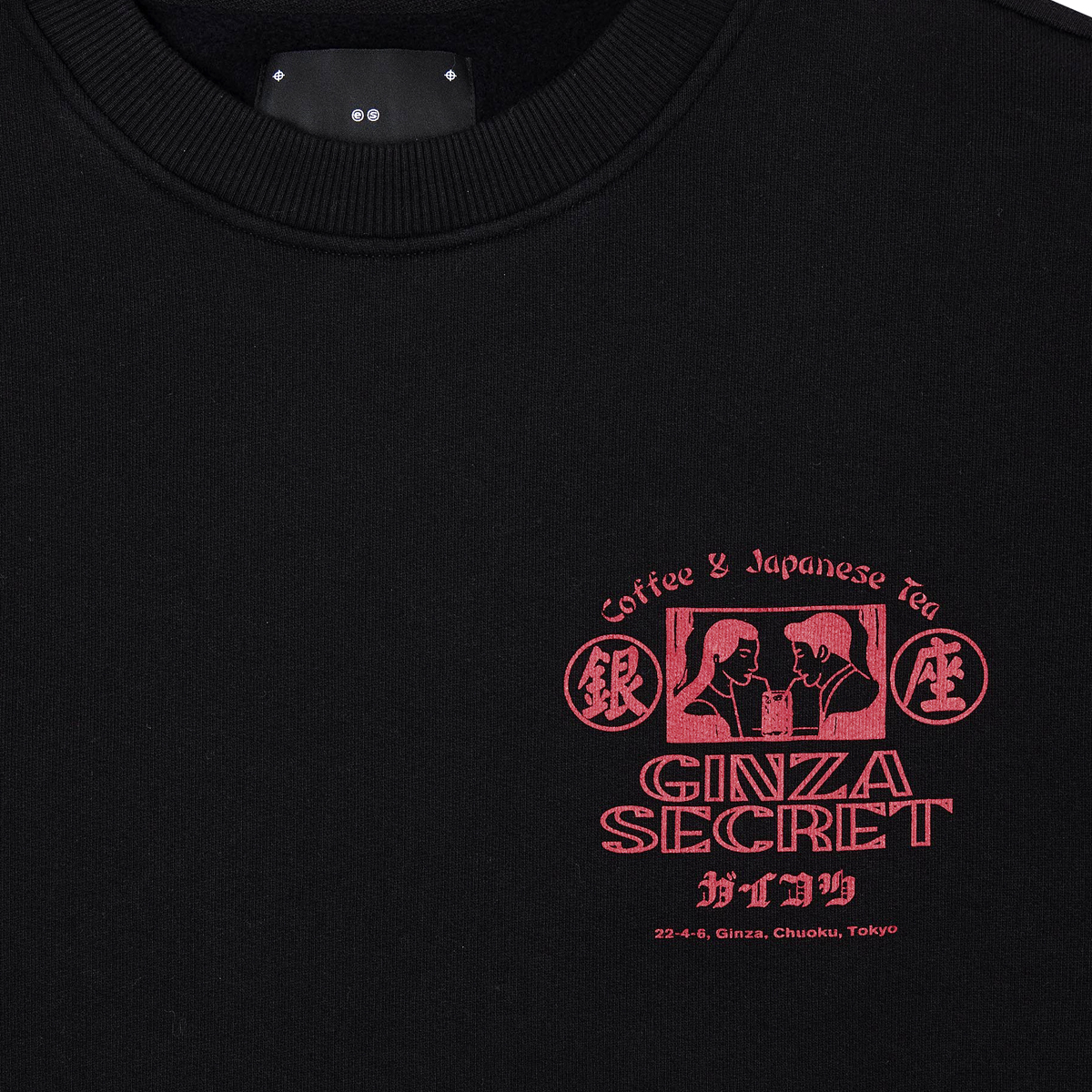 Das Ginza Secret Crewneck Sweatshirt ist ein Standard-Fit Sweater aus 100% Baumwolle (350g Brushed Inside) mit einem kleinen Frontprint und großem Backprint.