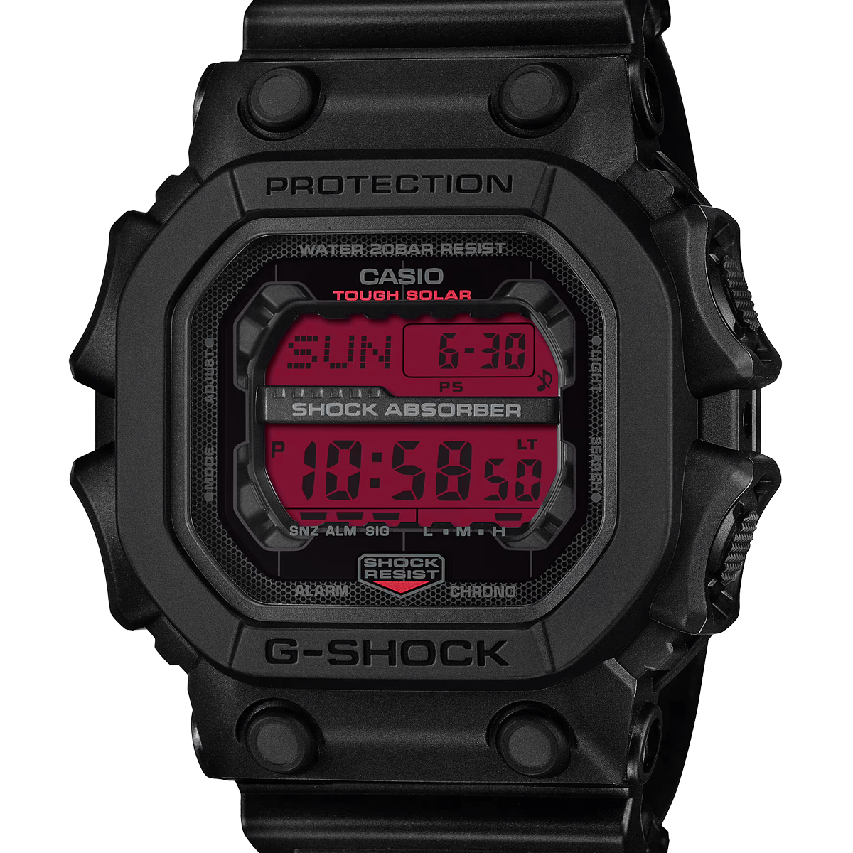 Die G-SHOCK GX-56BBR-1 aus dem Bold Black & Red Pack besticht durch ein mattschwarzes Design und einem tief roten Display.
