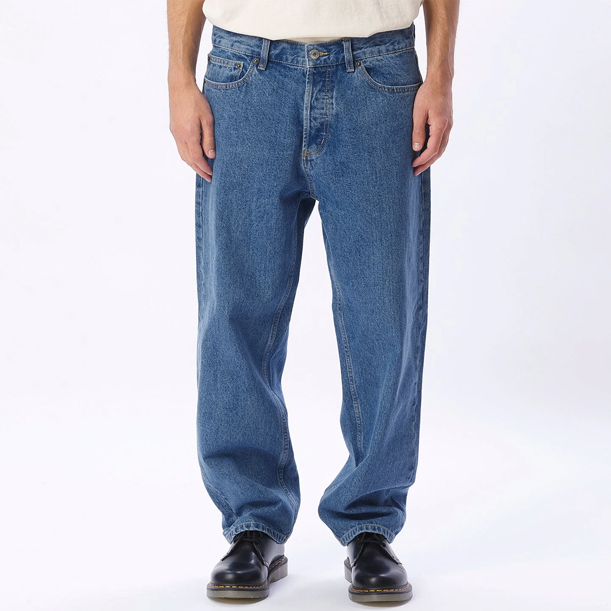 Die OBEY Hardwork Pant kommt im Relaxed-Fit mit einem nach unten leicht zulaufenden Bein. Sie hat einen mitteltiefen Schritt und ist aus einem 13,5 oz Cotton Denim. Sie wird auf der Hüfte getragen und die lässige Passform sorgt für einen ultimativen Wohlfühl-Faktor.