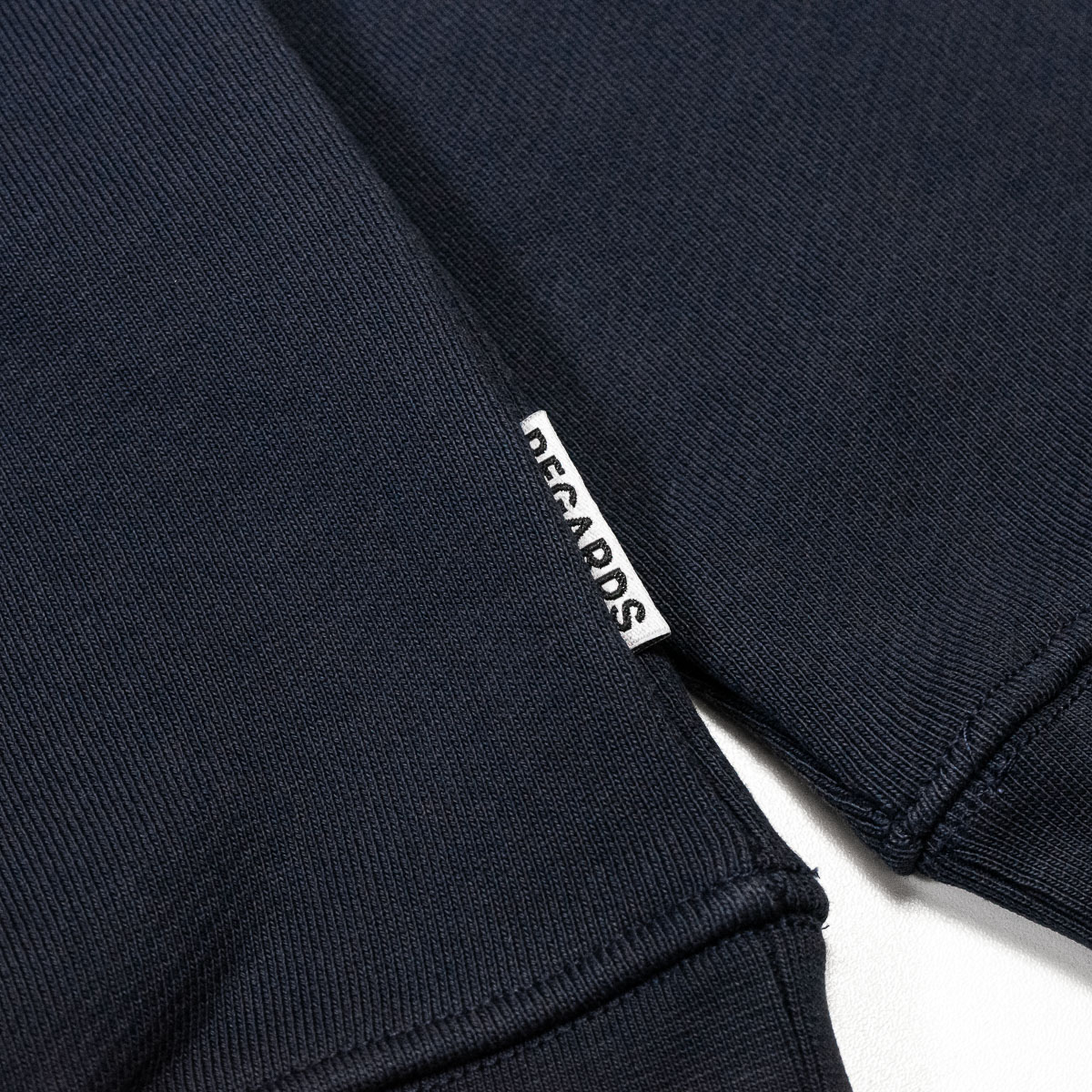 Das REGARDS Relaxed Loopback Heart Icon Chainstitch Crewneck Sweatshirt kommt in einem Unisex Relaxed-Fit aus 600g/m schwerem Heavyweight Frenchterry Organic Cotton (100% Baumwolle ). Auf der linken Brust trägt es ein filigran gesticktes (chainstitch) Artwork. Für einen cleaneren Look hat es ein kleines Woven Label an der linken Seitennaht.