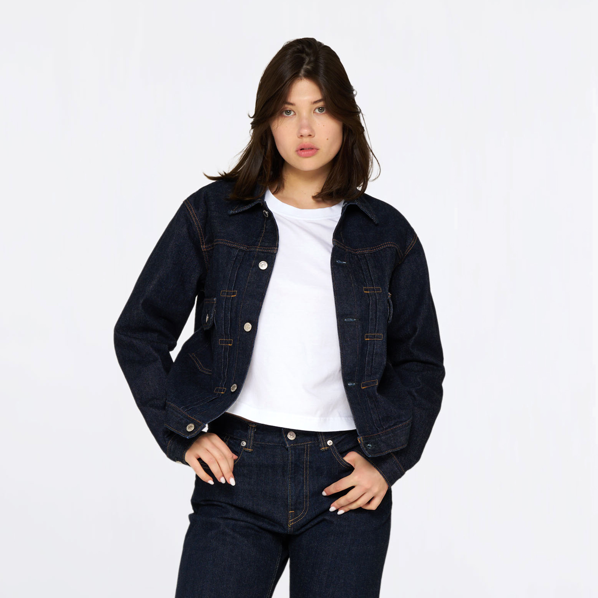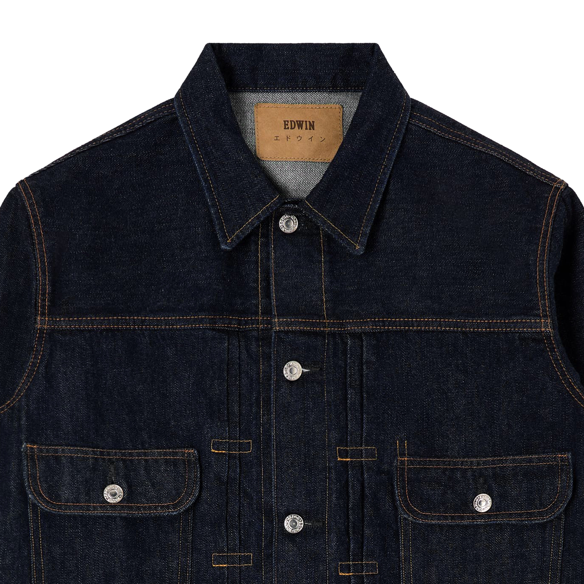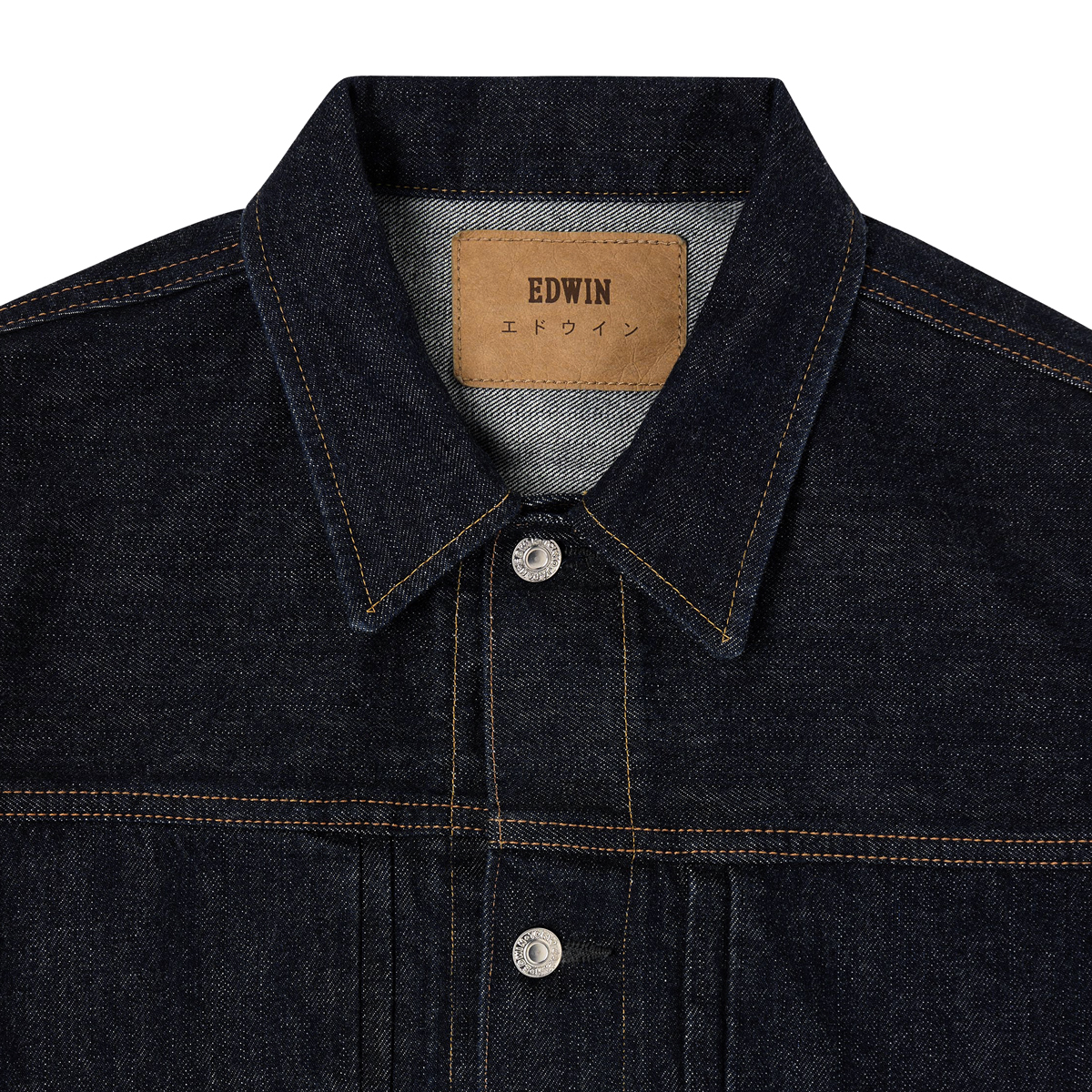 Typische Workwear-Details wie der spitze Kragen, die durchgehende Knopfleiste und zwei Brusttaschen unterstreichen den authentischen Charakter. Die feine, natürliche Textur des Selvage Denims rundet das Design ab und macht diese EDWIN Jeansjacke zu einem langlebigen Essential für Denim-Liebhaber.