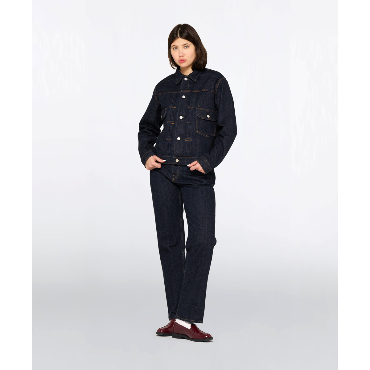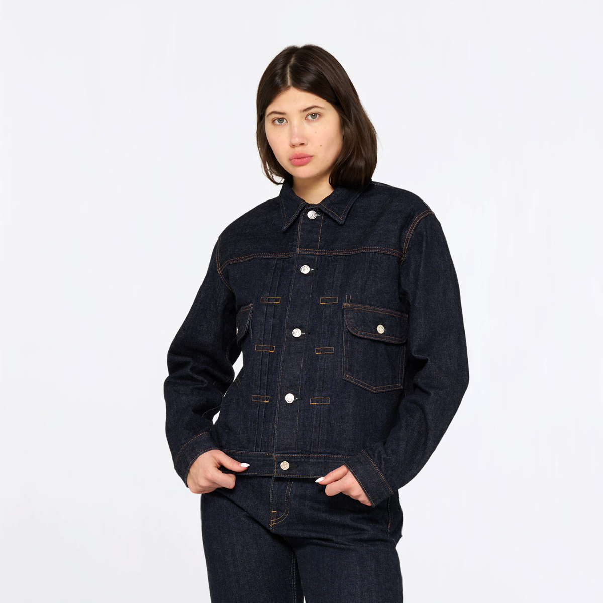 Der in Japan produzierte Stoff wird mit einer Blue Rinsed Waschung veredelt, welche der Jacke eine dezent eingetragene Optik sowie ein angenehm weiches Tragegefühl verleiht. Der Regular Fit sorgt für eine klassische Passform und hohen Tragekomfort – ideal für den Alltag und vielseitig kombinierbar.