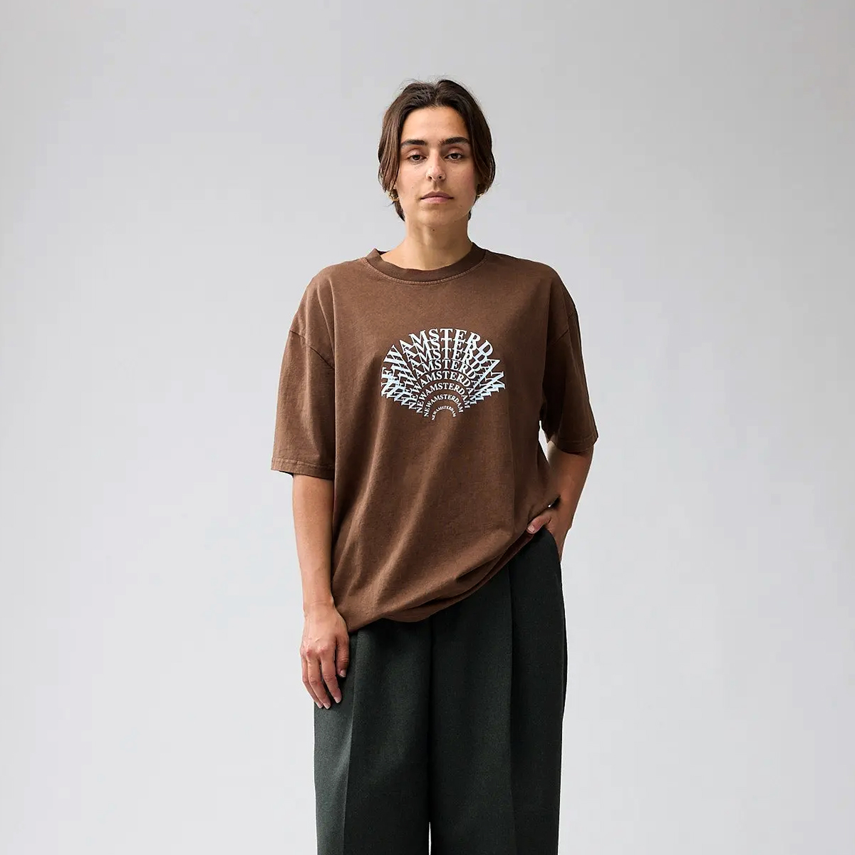 New Amsterdam Letter Oyster T-Shirt aus 100% Organic Cotton (220g Single Jersey) mit gedruckter Oyster-Grafik auf der Brust und Name Logo im Nacken.