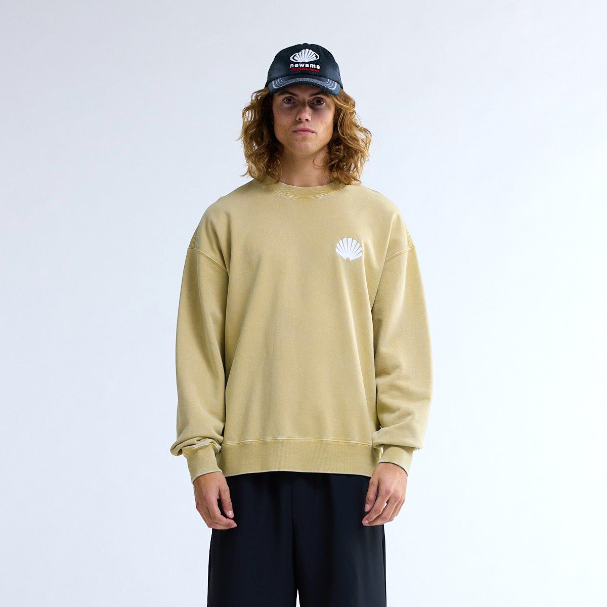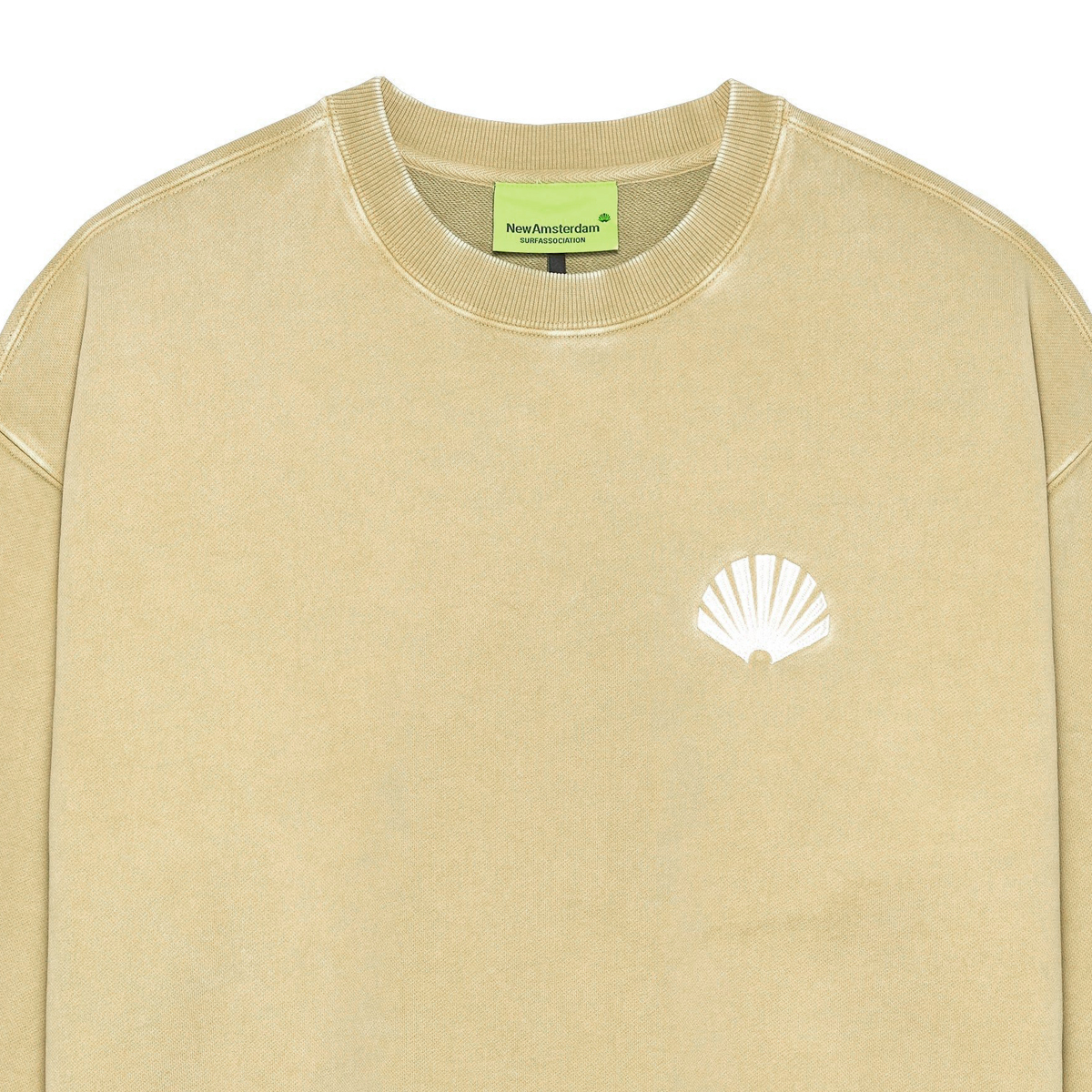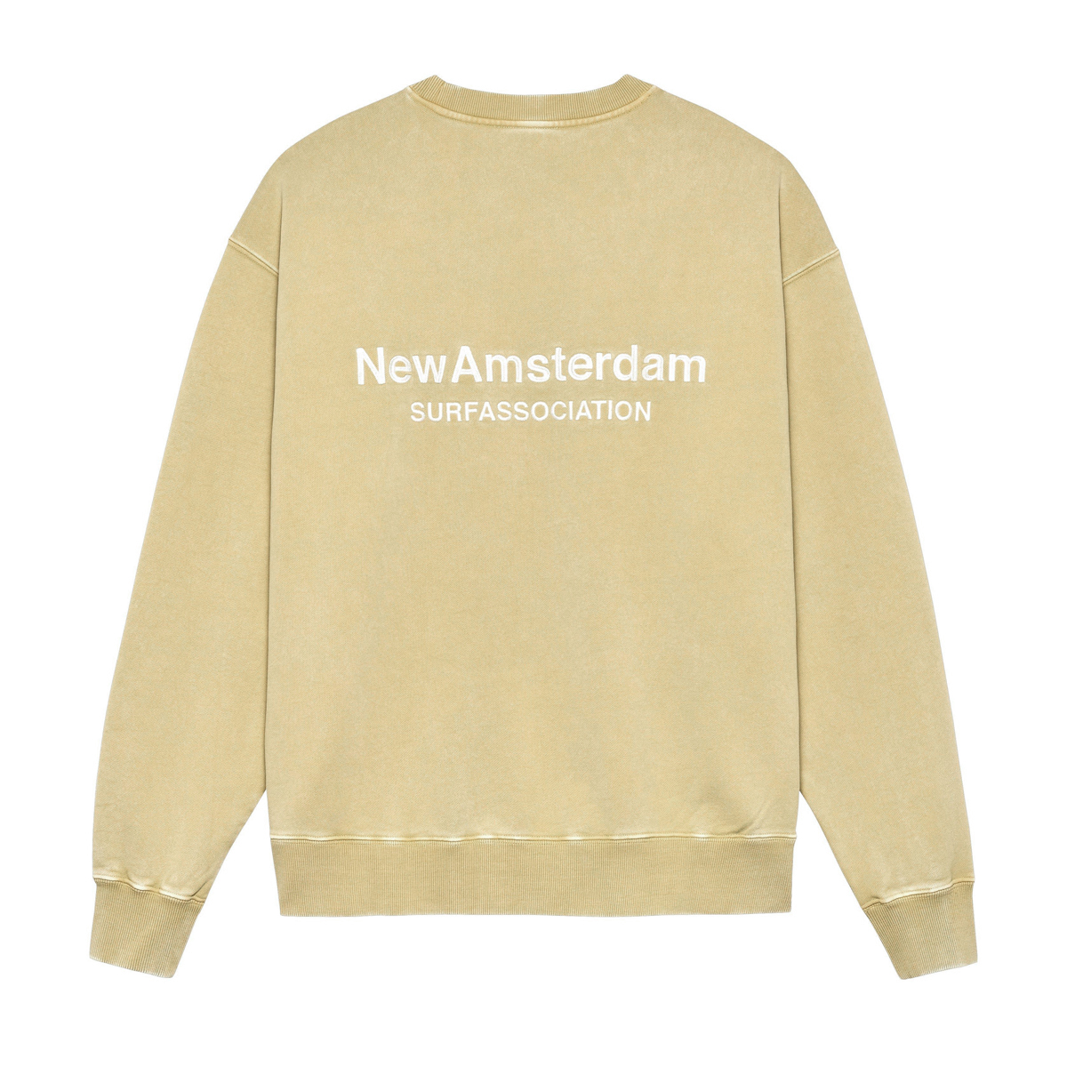 Das New Amsterdam Logo Crewneck Sweatshirt kommt in einem Unisex Regular-Fit aus 455g/m schwerem garment-dyed Heavyweight Frenchterry Cotton (100% Baumwolle ) und einem gestickten Artwork auf der Brust und dem Rücken.