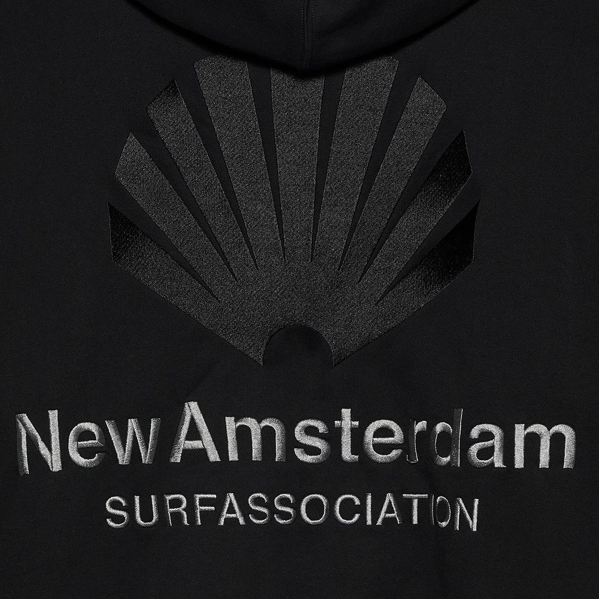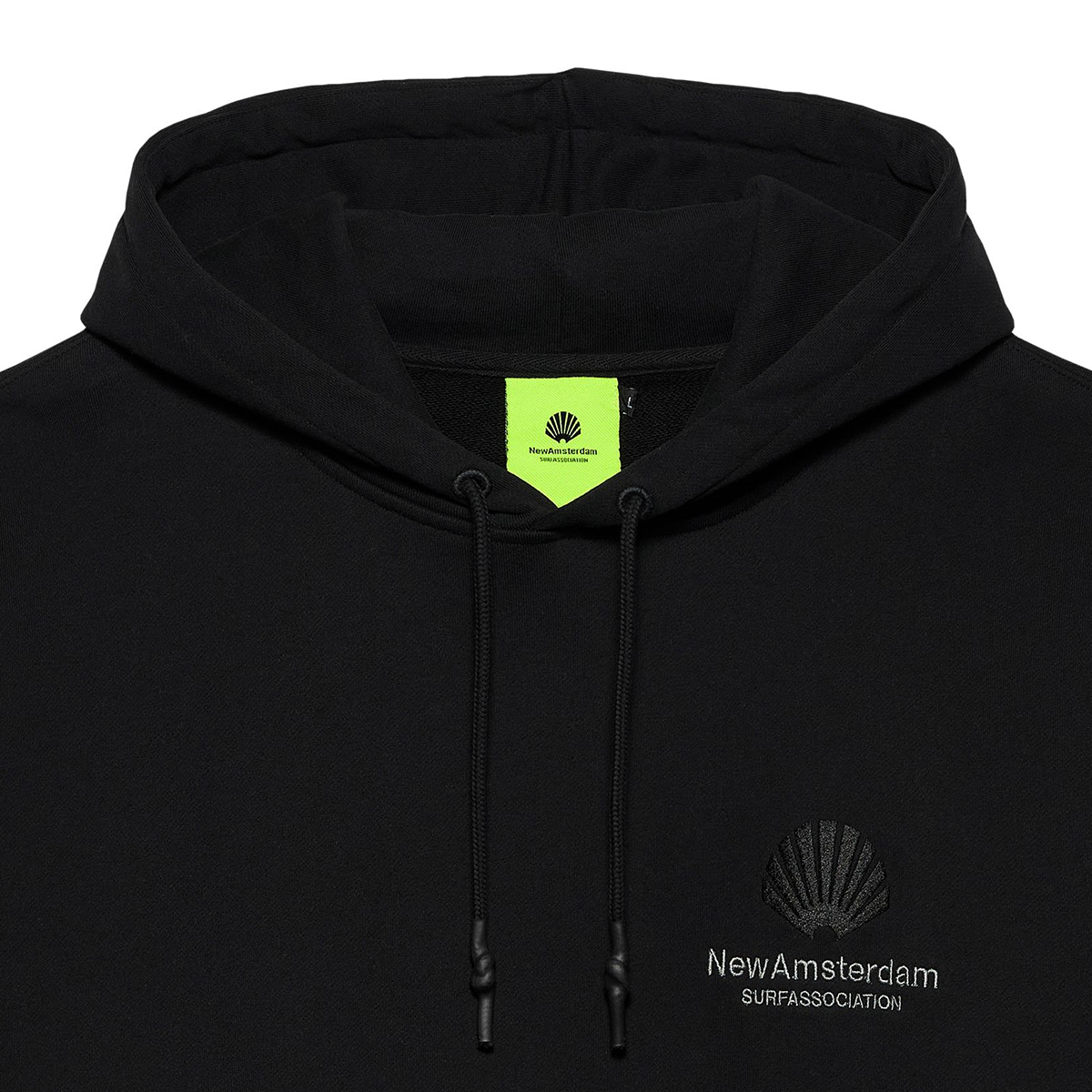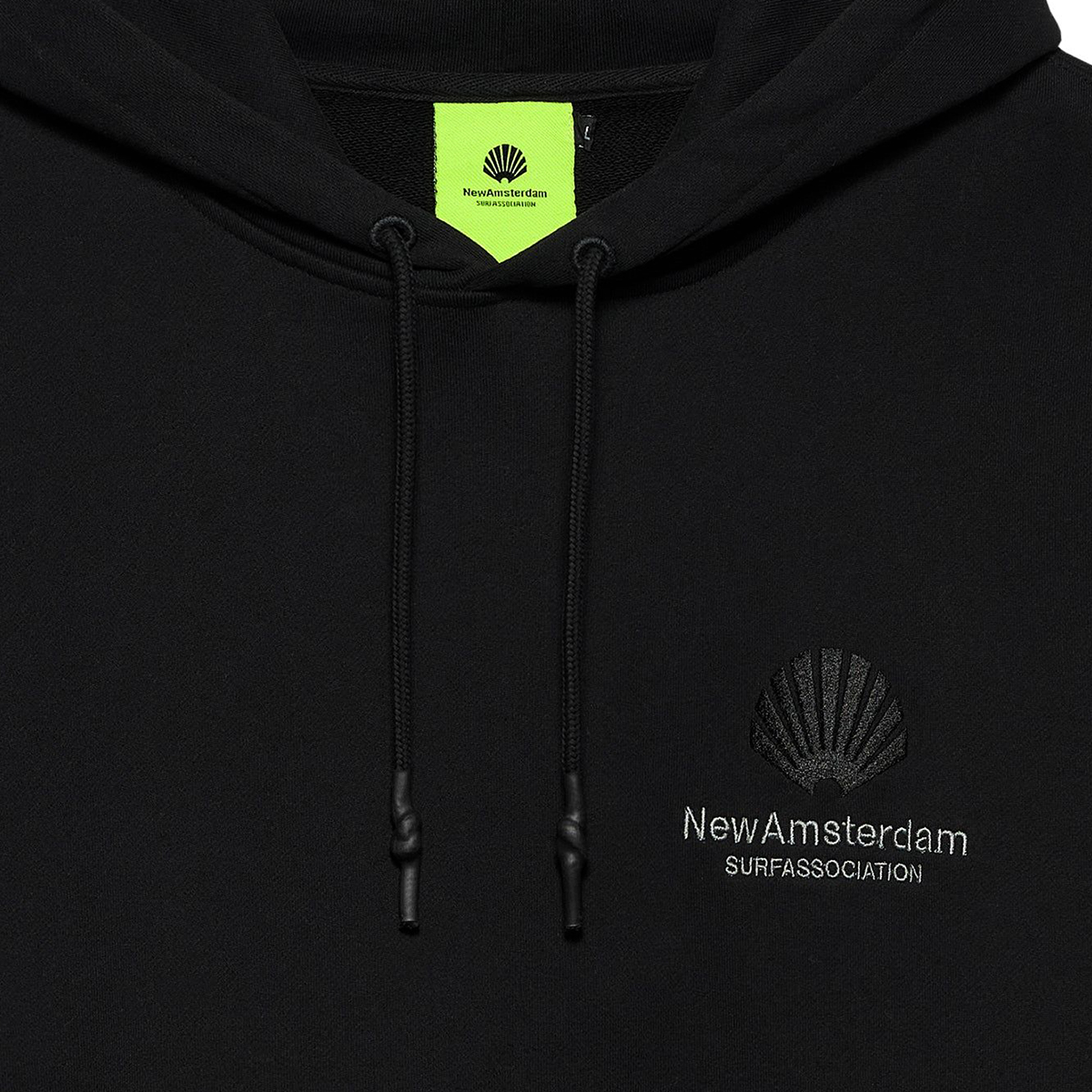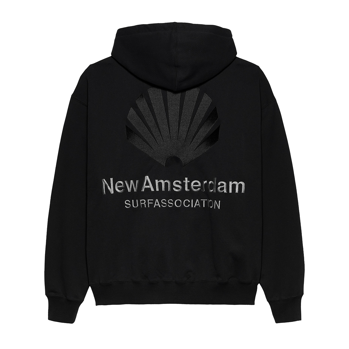 Das New Amsterdam Logo Hoodie kommt in einem Unisex Drop Shoulder Oversized-Fit aus 455g/m schwerem Heavyweight Cotton (100% Baumwolle ) mit kleinem, gestickten Logo auf der linken Brust und großer, gestickter Applikation auf dem Rücken.