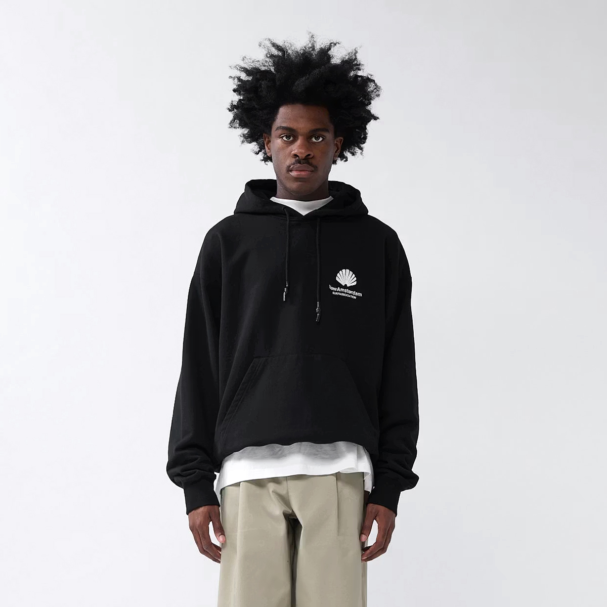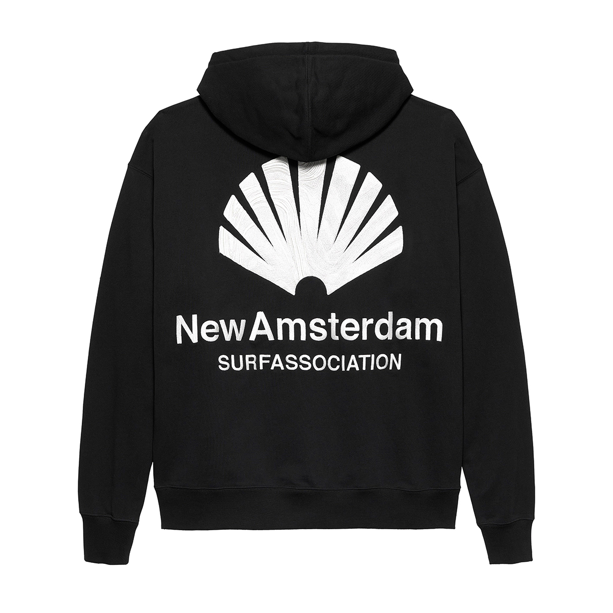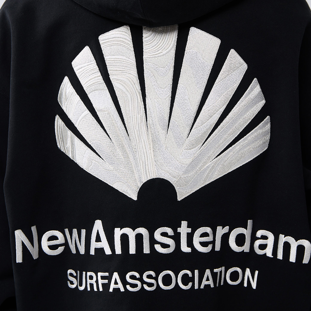 Das New Amsterdam Logo Hoodie kommt in einem Unisex Oversized-Fit aus 455g/m schwerem garment-dyed Heavyweight Frenchterry Cotton (100% Baumwolle ) und einem gestickten oversized Logo Artwork auf dem Rücken und der Brust, hergestellt aus zwei verschiedenfarbigen Garnen und unterschiedlichen Stickstrukturen für einen einzigartigen Look.