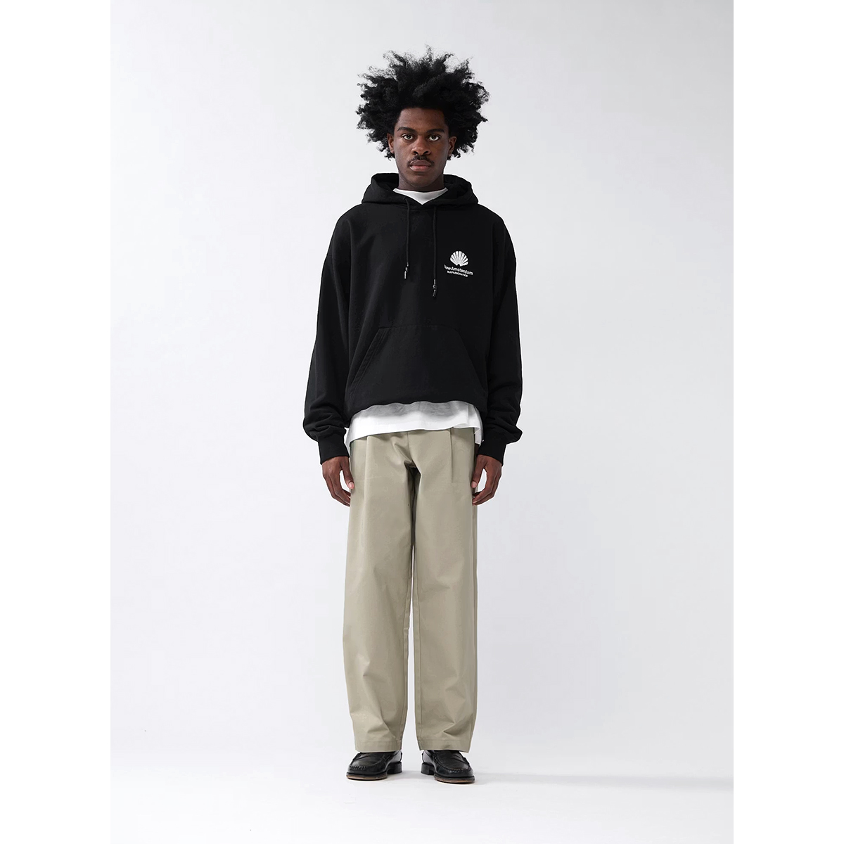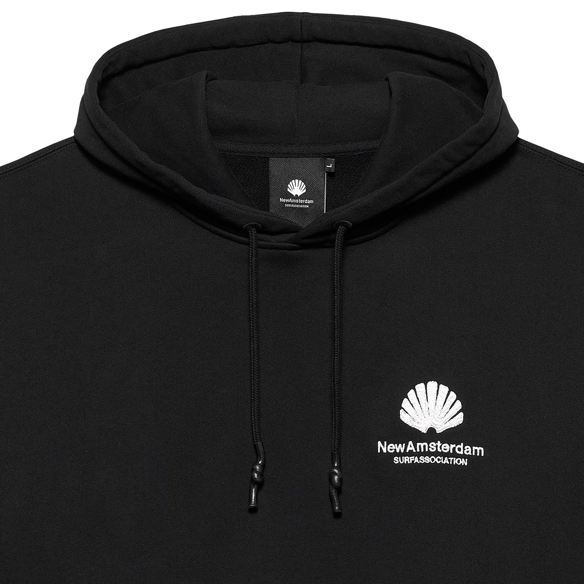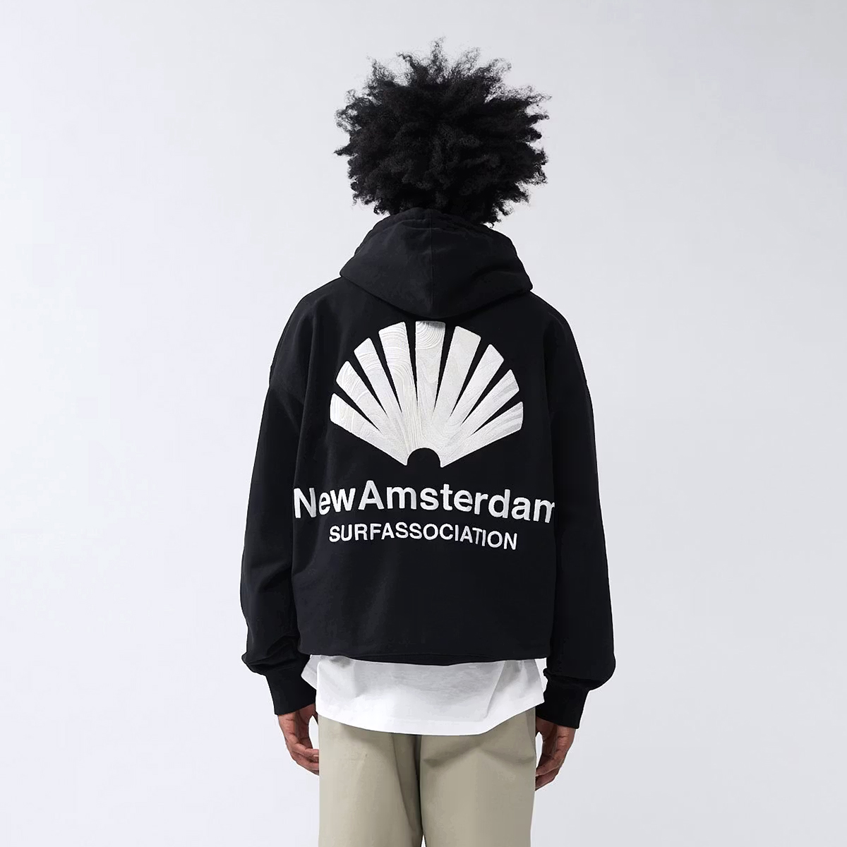 Das New Amsterdam Logo Hoodie kommt in einem Unisex Oversized-Fit aus 455g/m schwerem garment-dyed Heavyweight Frenchterry Cotton (100% Baumwolle ) und einem gestickten oversized Logo Artwork auf dem Rücken und der Brust, hergestellt aus zwei verschiedenfarbigen Garnen und unterschiedlichen Stickstrukturen für einen einzigartigen Look.