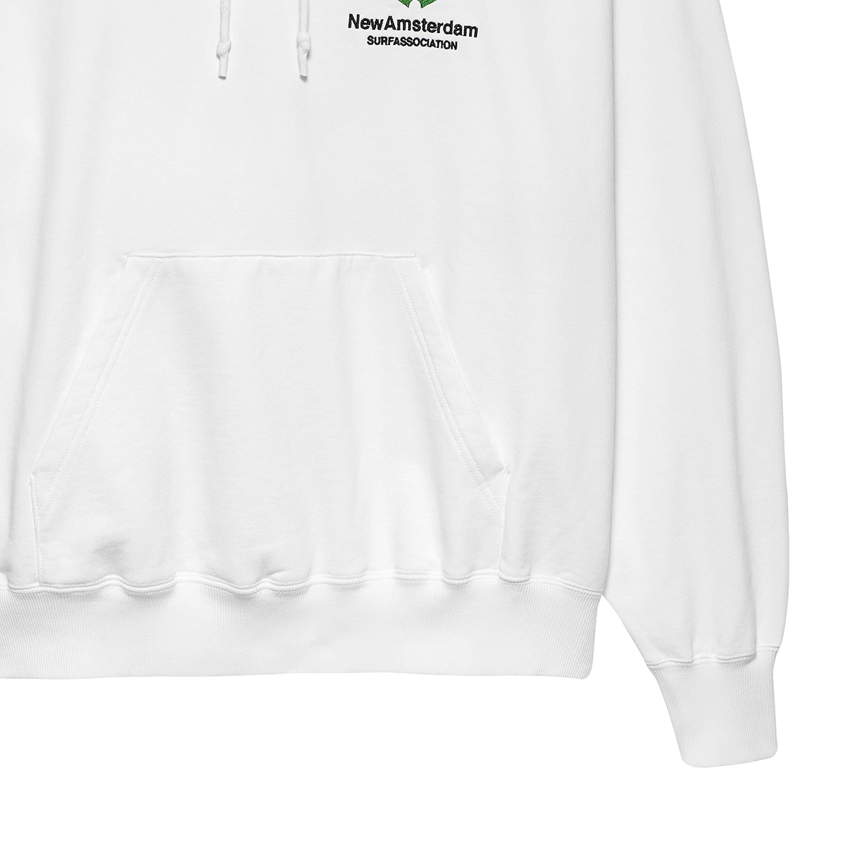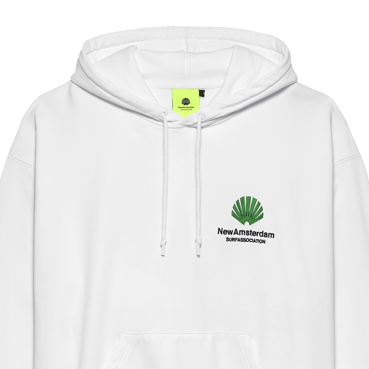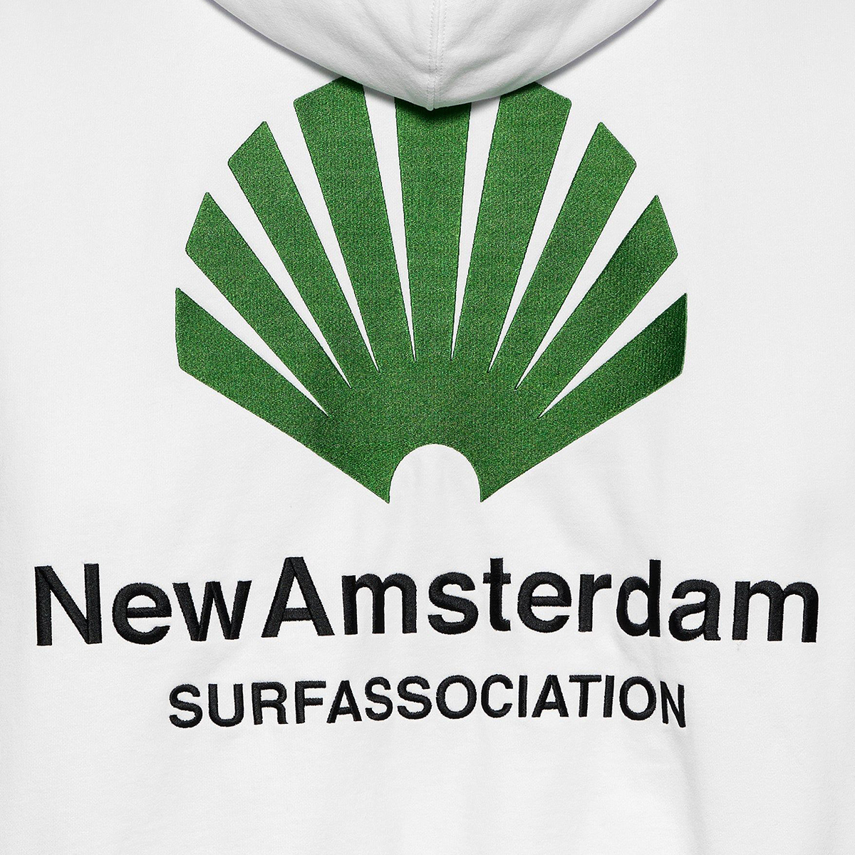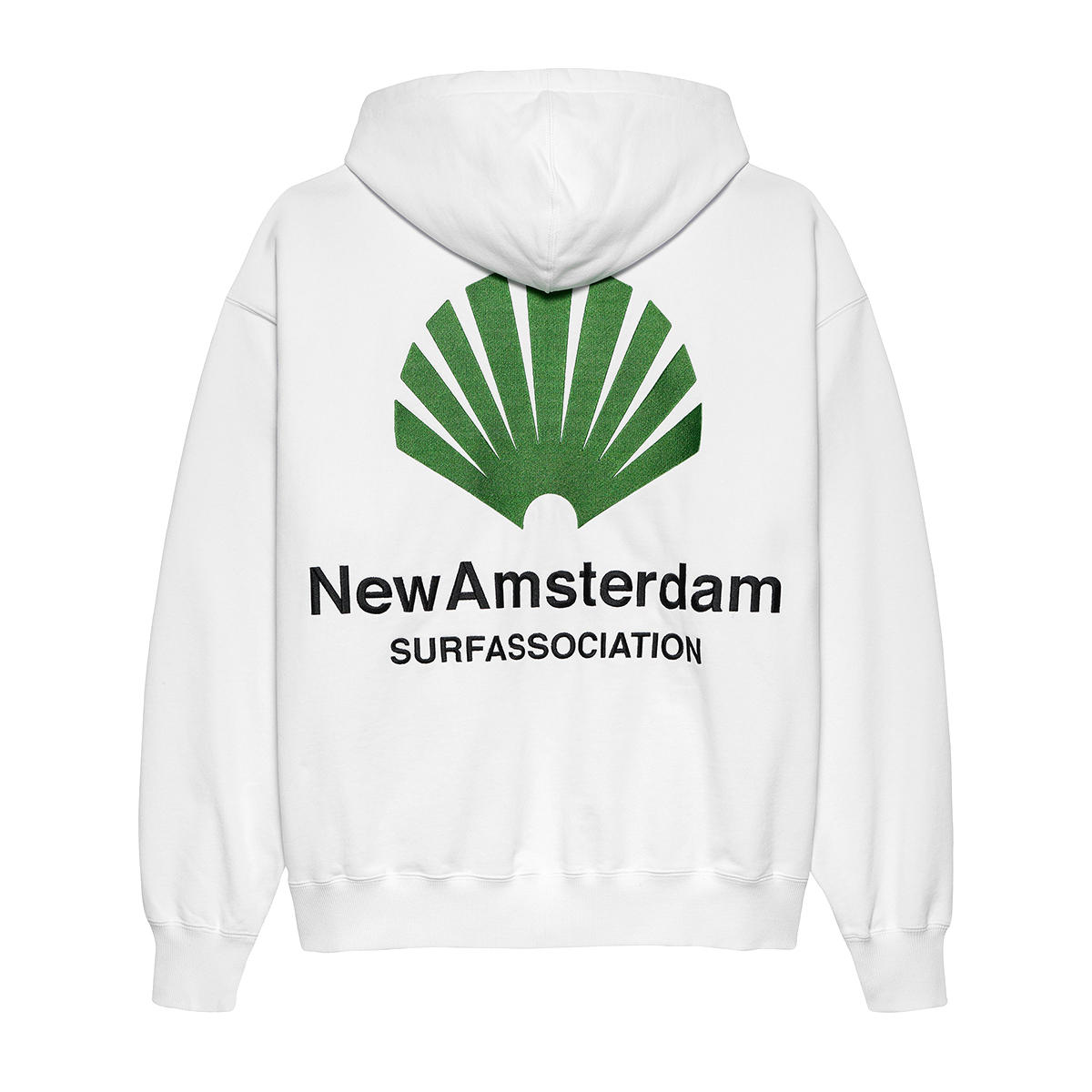 Das New Amsterdam Logo Hoodie kommt in einem Unisex Drop Shoulder Oversized-Fit aus 455g/m schwerem Heavyweight Cotton (100% Baumwolle ) mit kleinem, gestickten Logo auf der linken Brust und großer, gestickter Applikation auf dem Rücken.