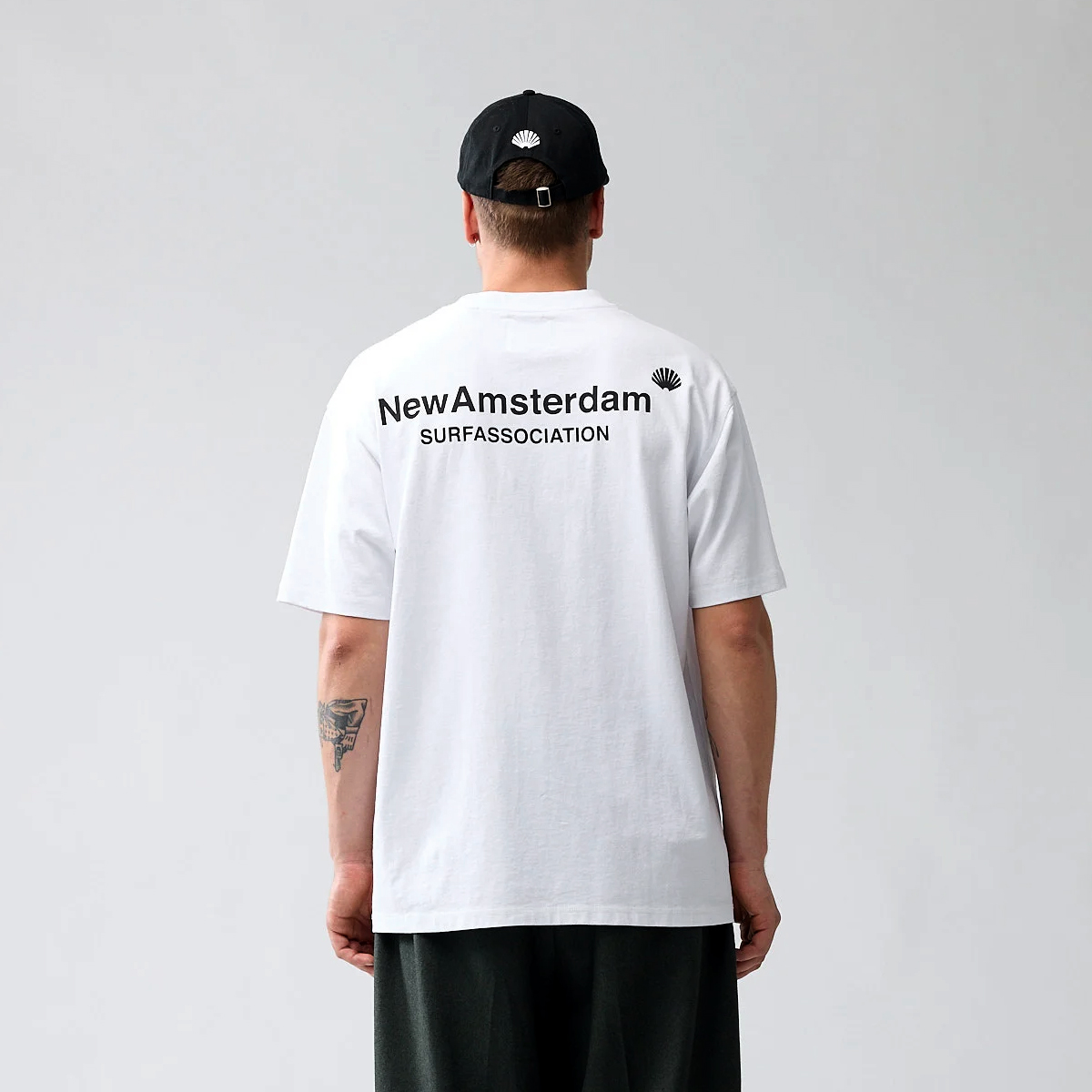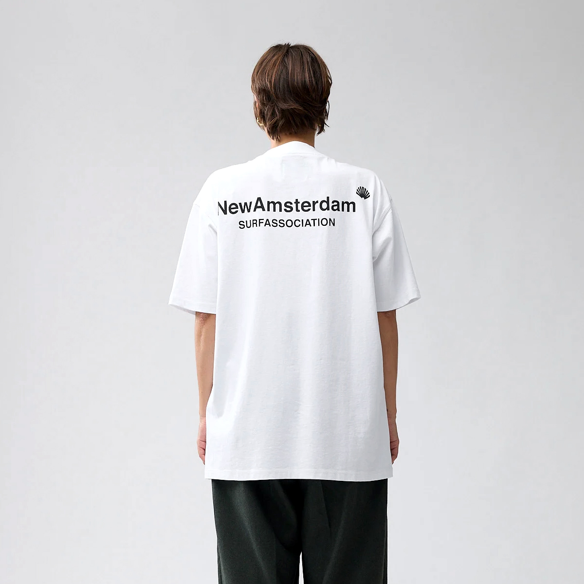 New Amsterdam Logo T-Shirt aus 100% Organic Cotton (220g Single Jersey) mit gedrucktem Oyster Logo auf der Brust und Name Logo auf dem Rücken.