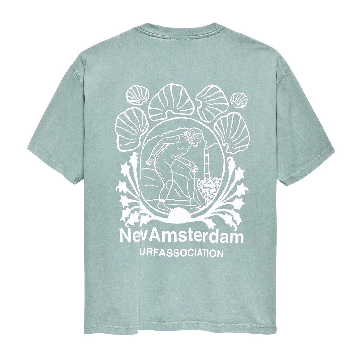 New Amsterdam Lost Surfer T-Shirt aus 100% Baumwolle (240g Single Jersey) mit gedrucktem Artwork auf der Brust und dem Rücken.