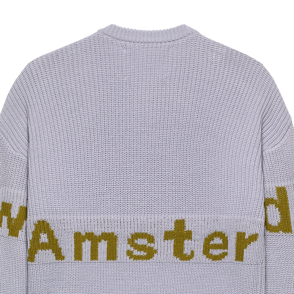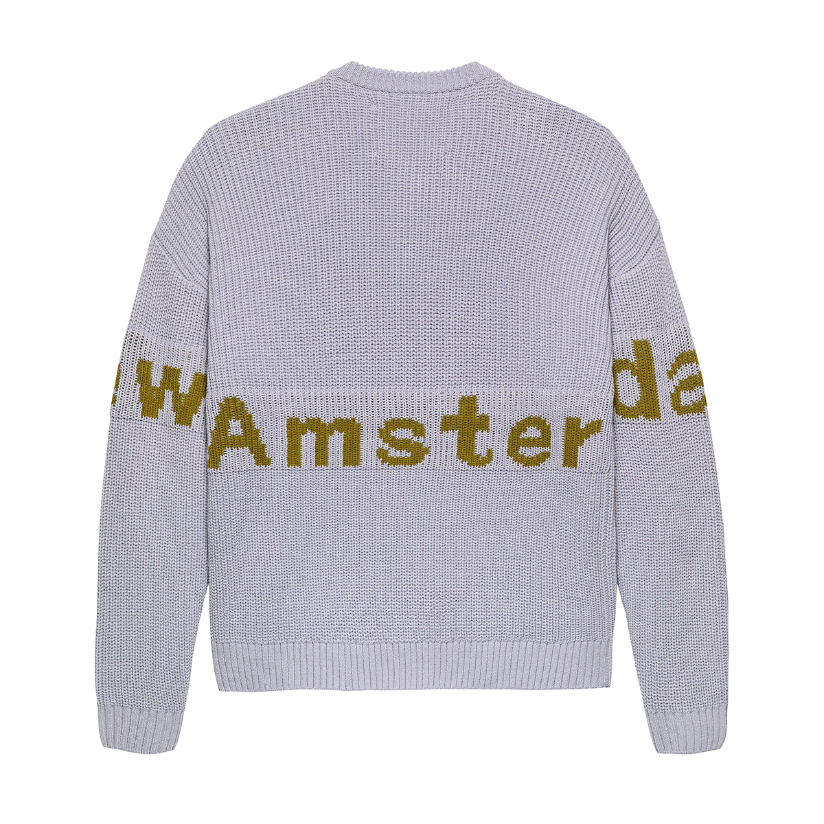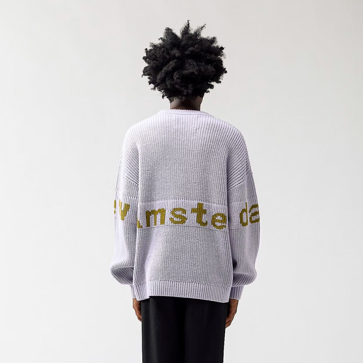 Der New Amsterdam Name Crewneck Stricksweater kommt in einem Unisex Drop Shoulder Oversized-Fit aus schwerem Acryl Strick und einem eingewebtem New Amsterdam Schriftzug.