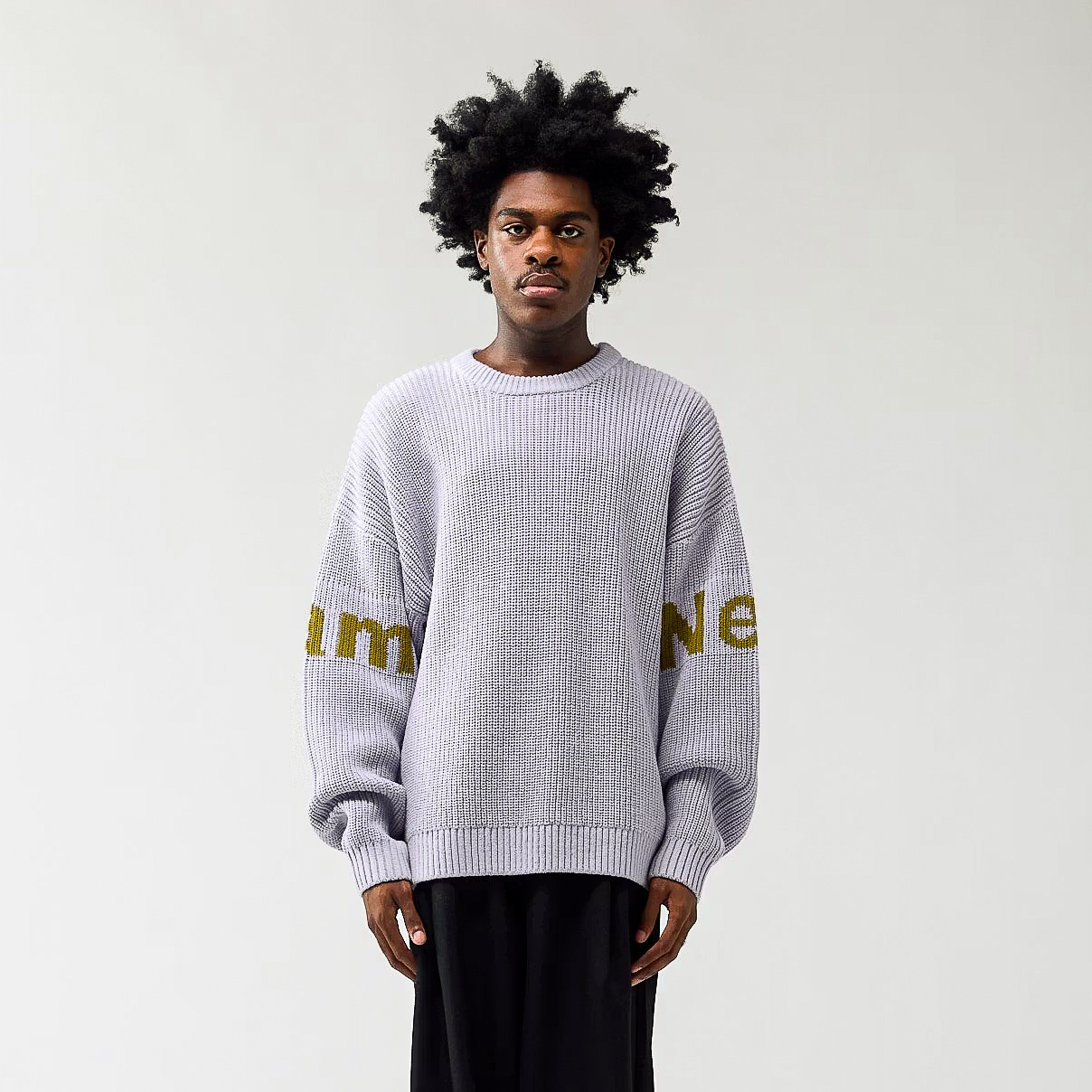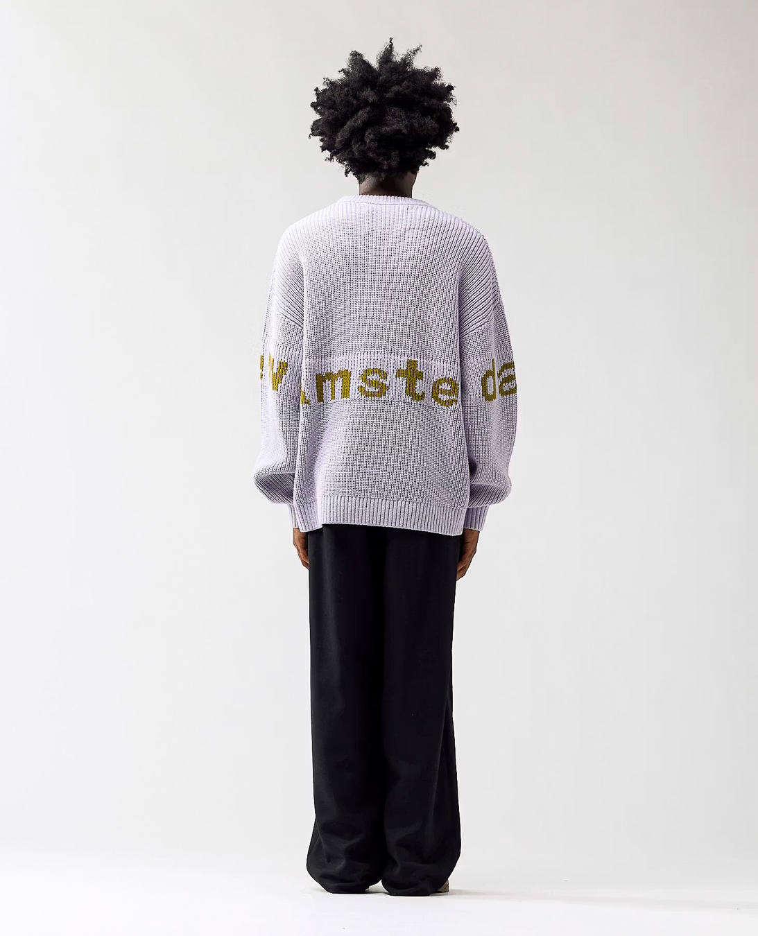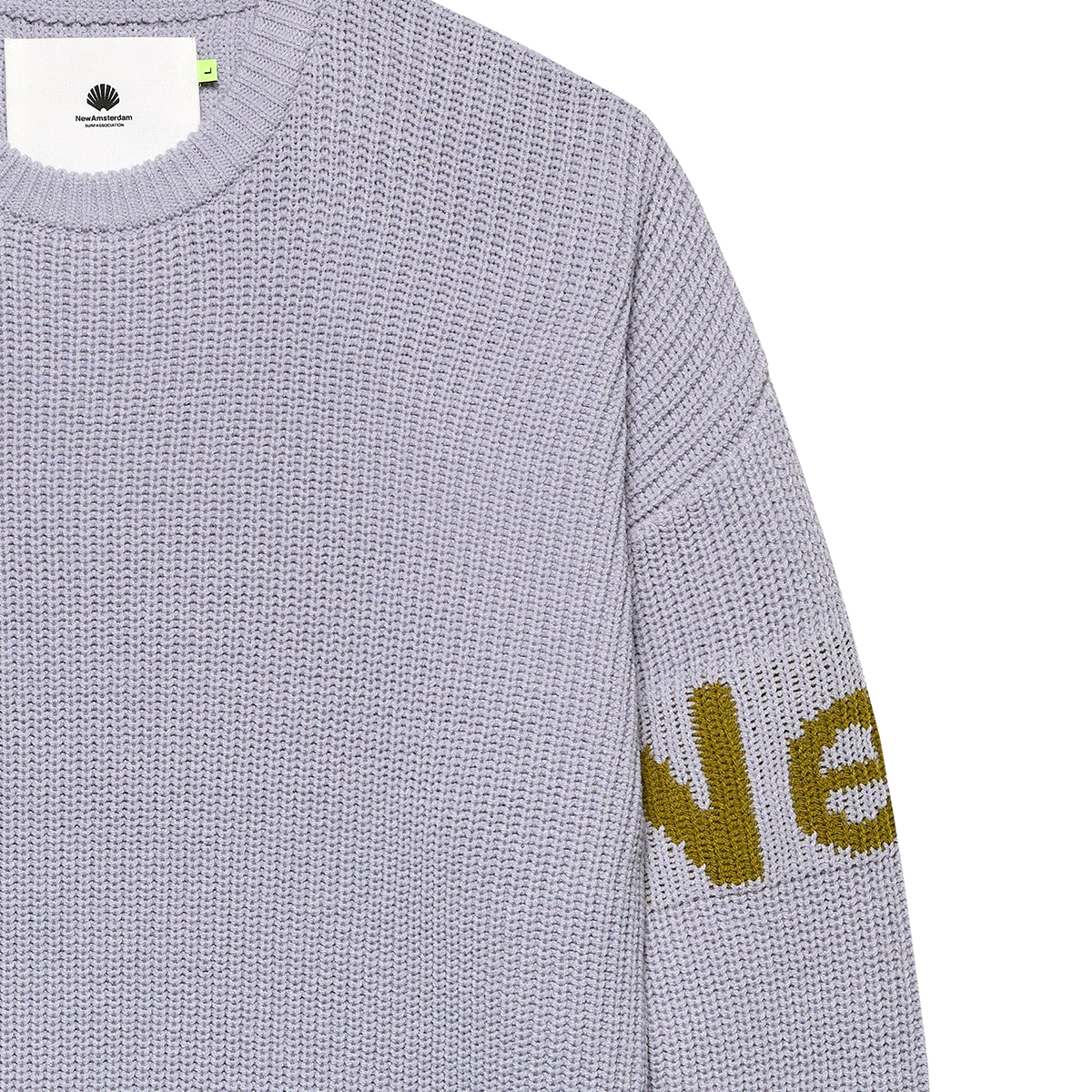 Der New Amsterdam Name Crewneck Stricksweater kommt in einem Unisex Drop Shoulder Oversized-Fit aus schwerem Acryl Strick und einem eingewebtem New Amsterdam Schriftzug.